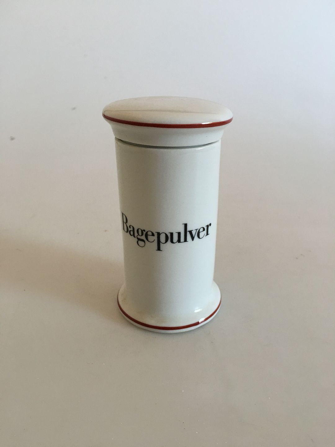Bing & Grondahl Bagepulver (Baking Powder) Spice Jar No 497 from the Apothecary Collection designed by Bo Bonfils in the 1970s. 11 cm H. (4 21/64")