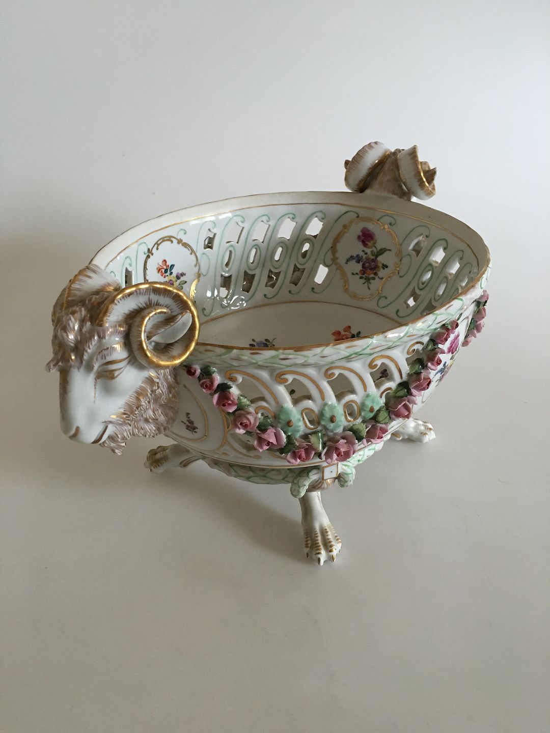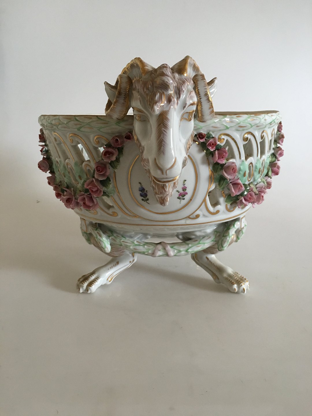 Pierced Footed bowl with Flower Ranks and Ram Heads. 37 cm dia (14 9/16"). 20 cm H (7 7/8"). In very nice condition.