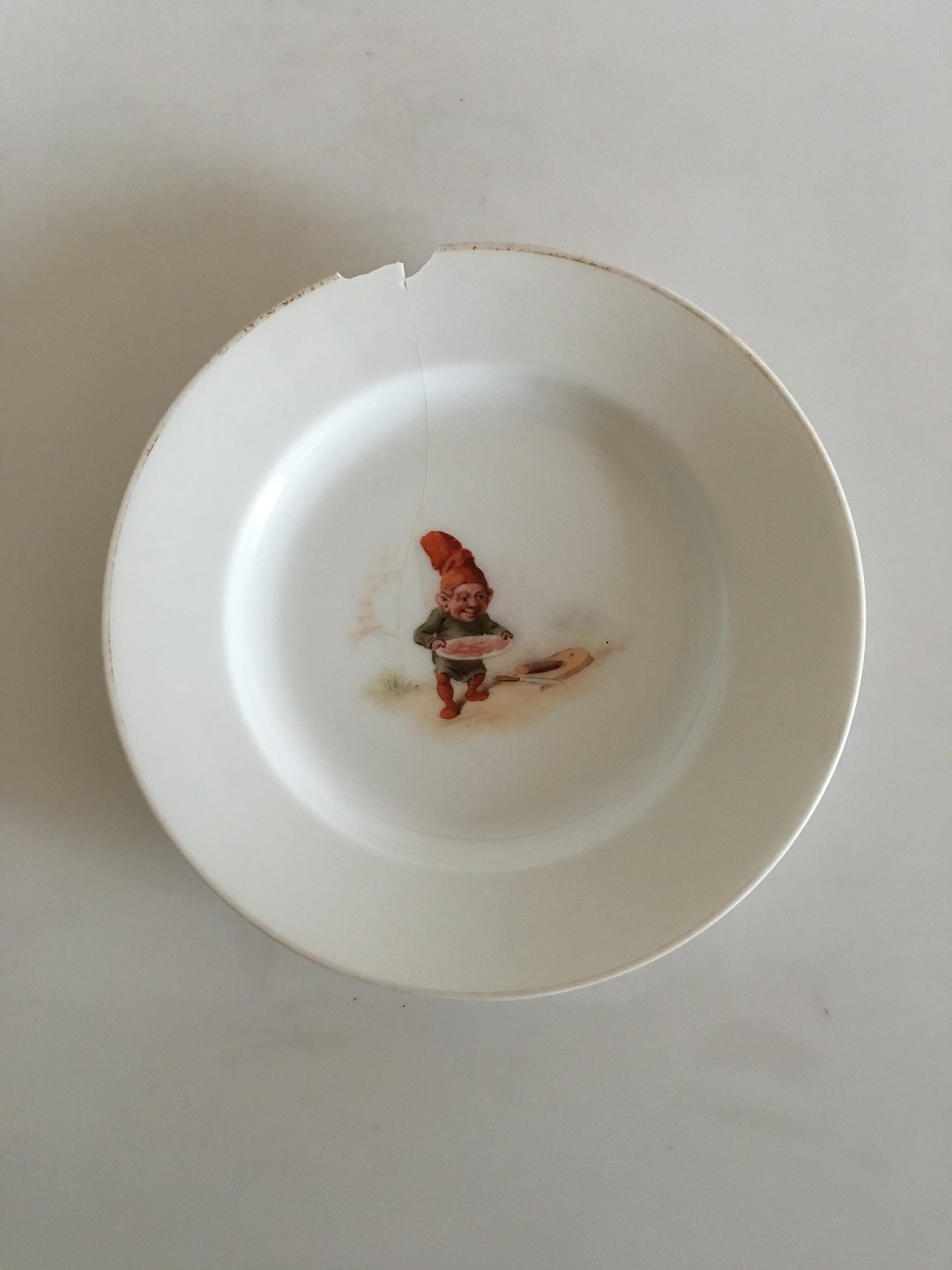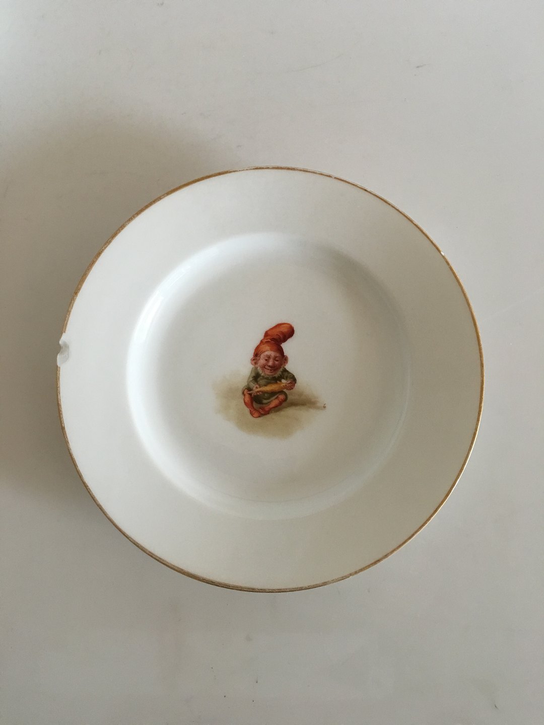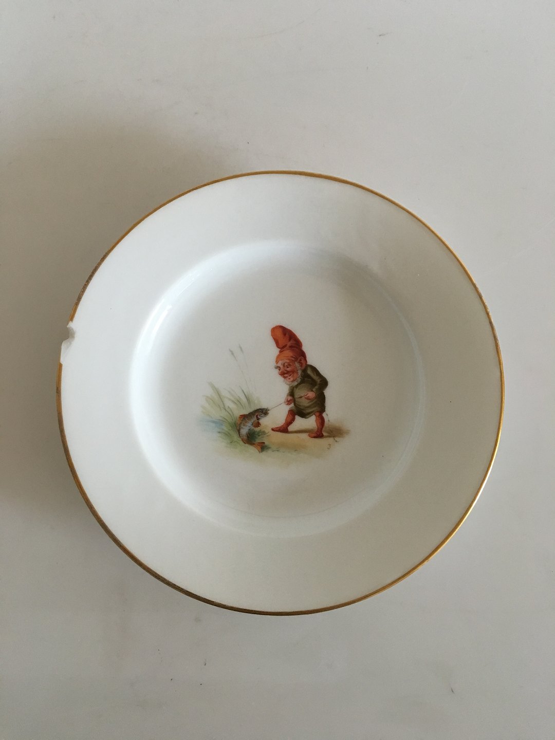5. Plate 20.5 cm (8 5/64"). Gnome with dish with meat cuttings. The gold is worn and the plate has two chips along the border edge.