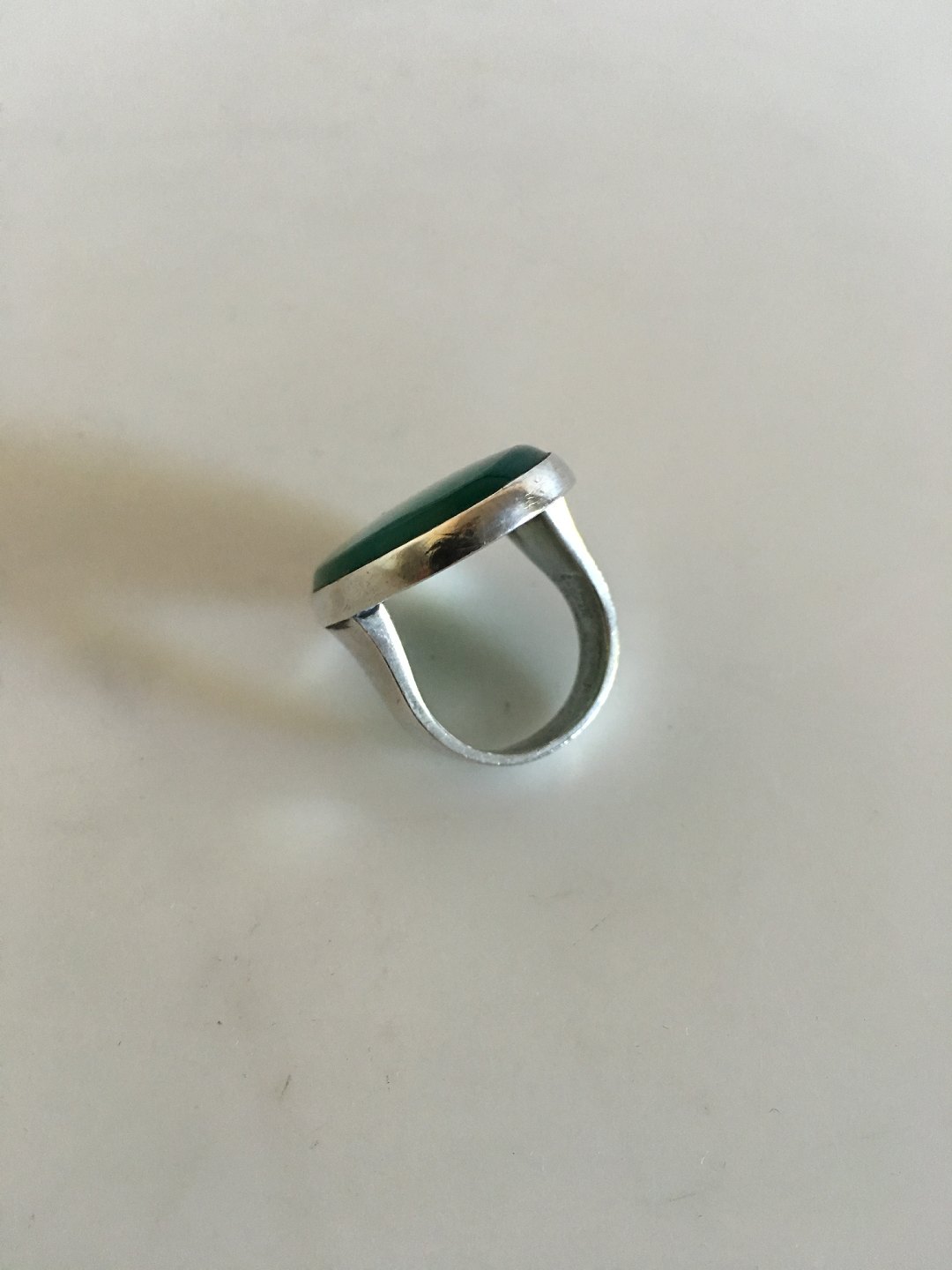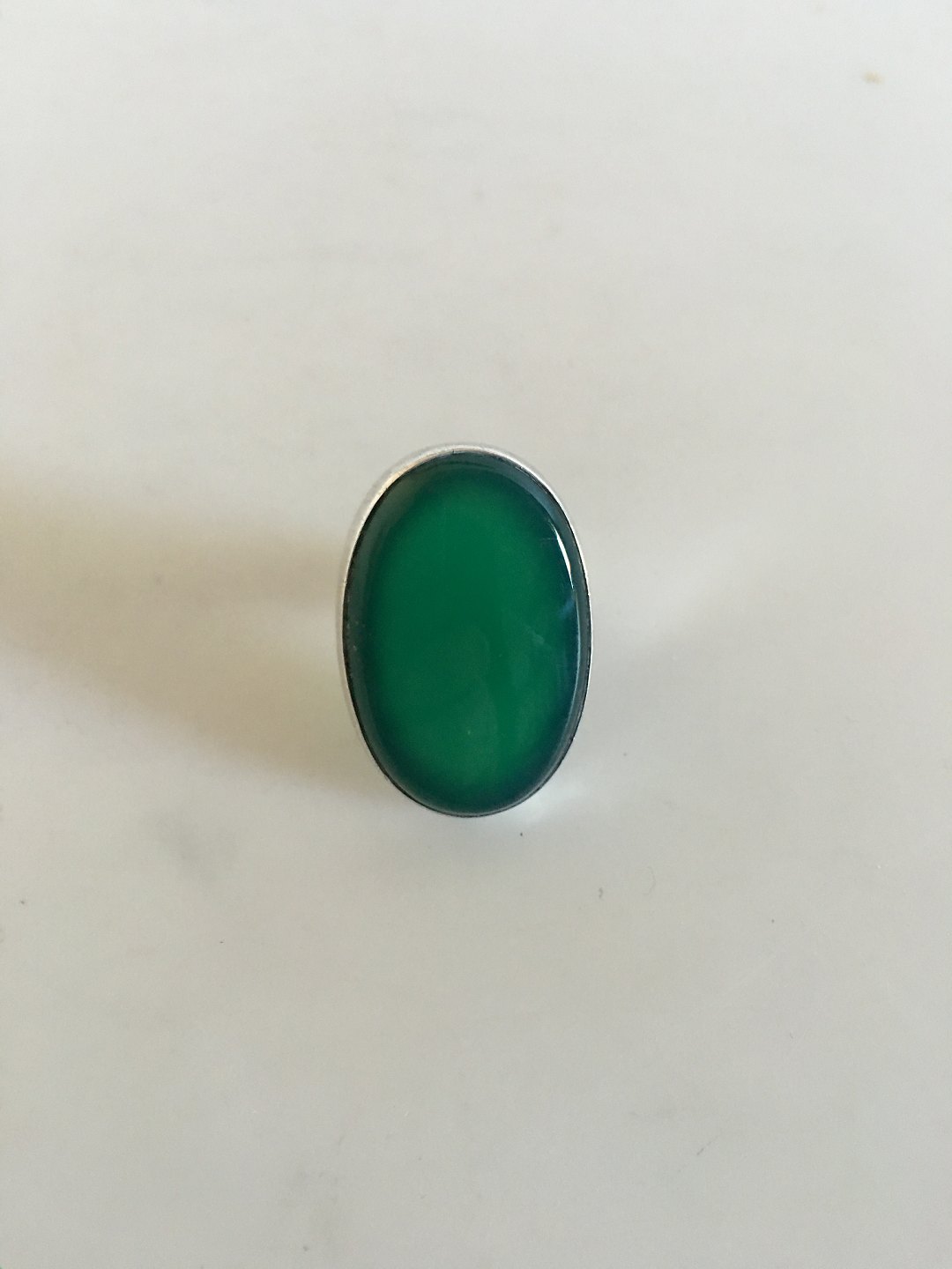 Georg Jensen Sterling Silver Ring No 90A with Green Agate. From after 1945. Stone measures 3 cm (1 3/16"). Ring Size 55 (US 7 ½).