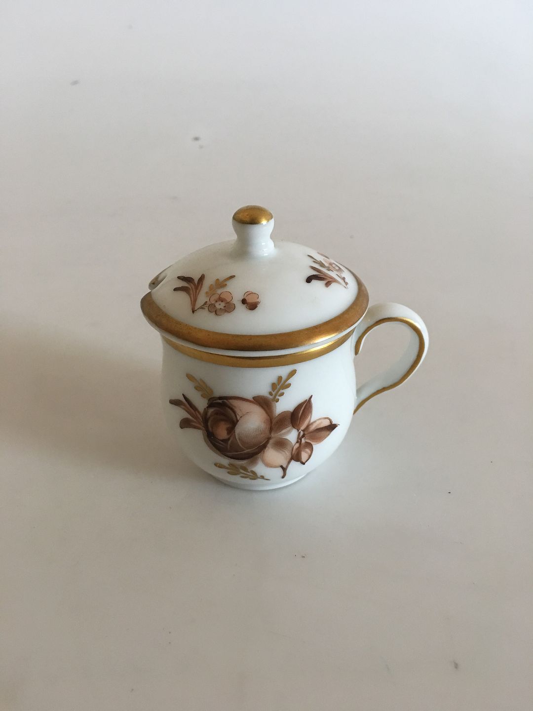 Royal Copenhagen Brown Rose Mustard Cup with Lid No 9166. 5.5 cm H. (2 11/64")