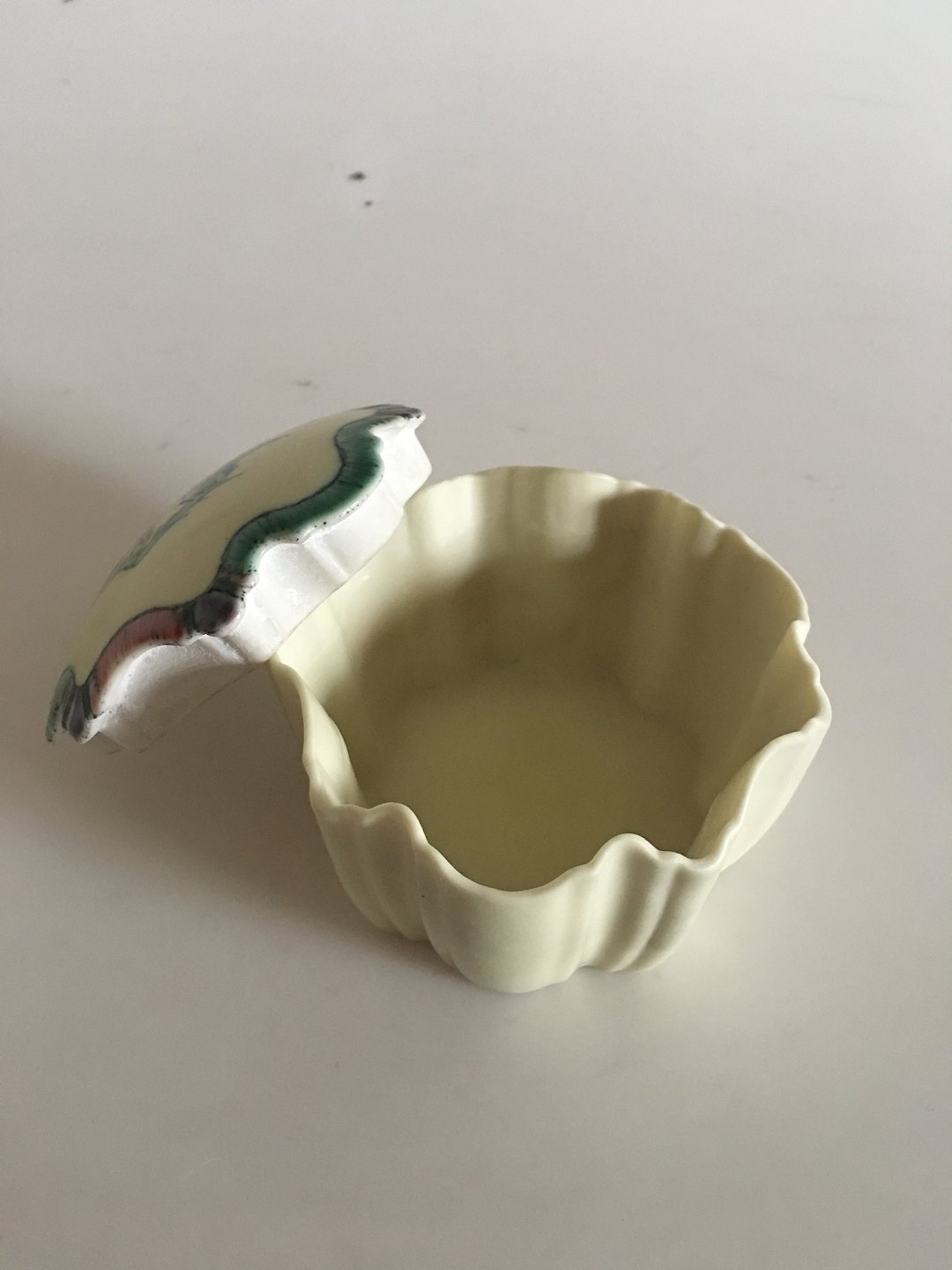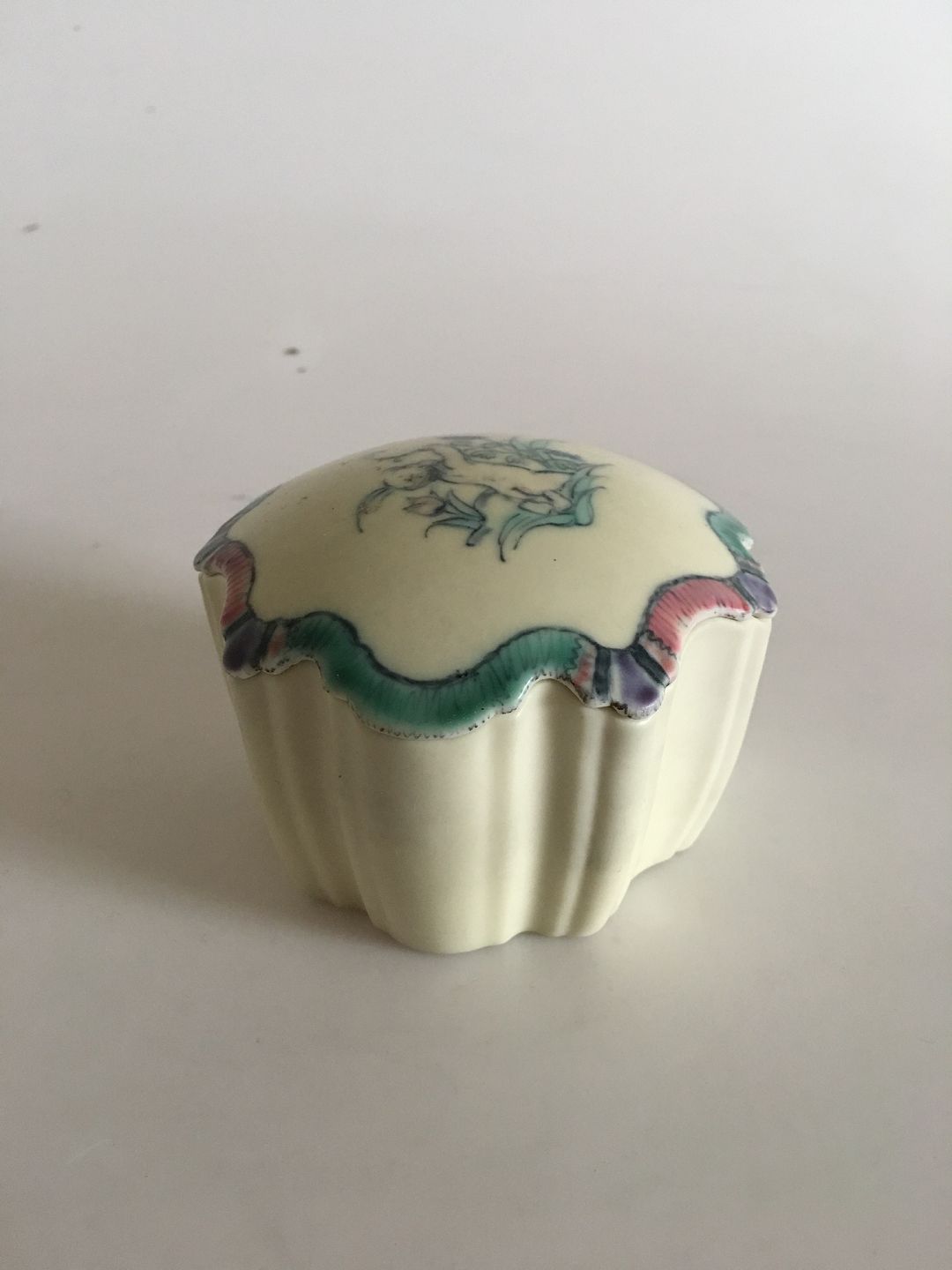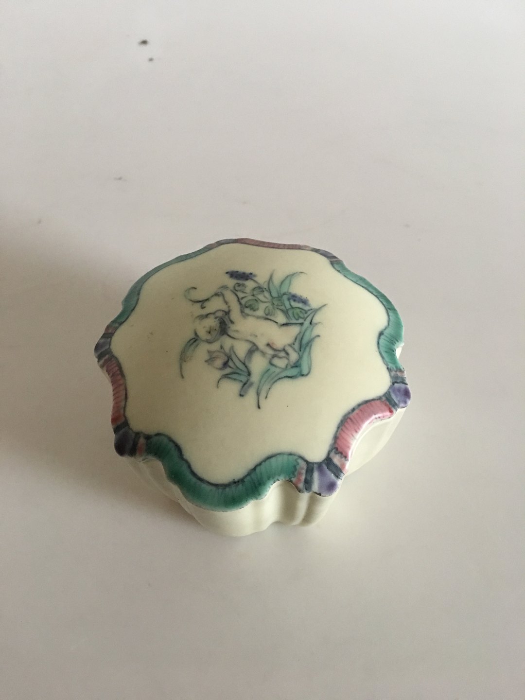Bing & Grondahl Art Nouveau Box with Lid No 607 by Jo Hahn Locher. In nice condition. Measures 6 cm H (2 23/64"). 9.5 cm dia (3 47/64").