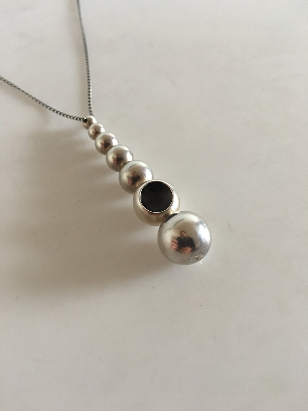 Georg Jensen Sterling Silver Cava Necklace. The Chain measures 51 cm L (20 5/64"). The pendant measures 6.5 cm L (2 9/16"). Weighs 18 grams (0.65 oz).