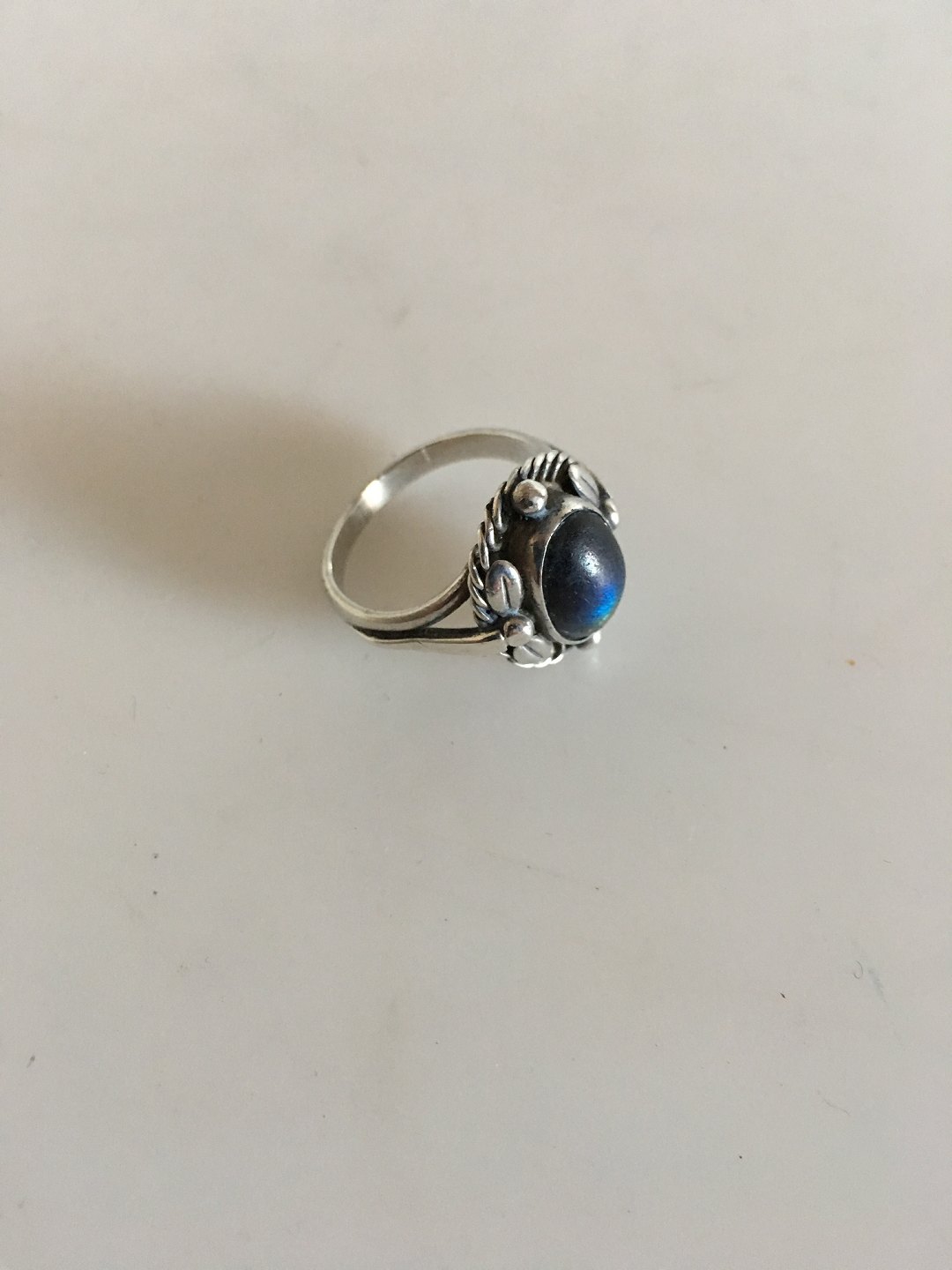 Georg Jensen Sterling Silver Ring No 1 with a Shimmering Blue Stone. From 1932-1944. Ring Size 57 / US 8. Weighs 4.9 g / 0.17 oz.