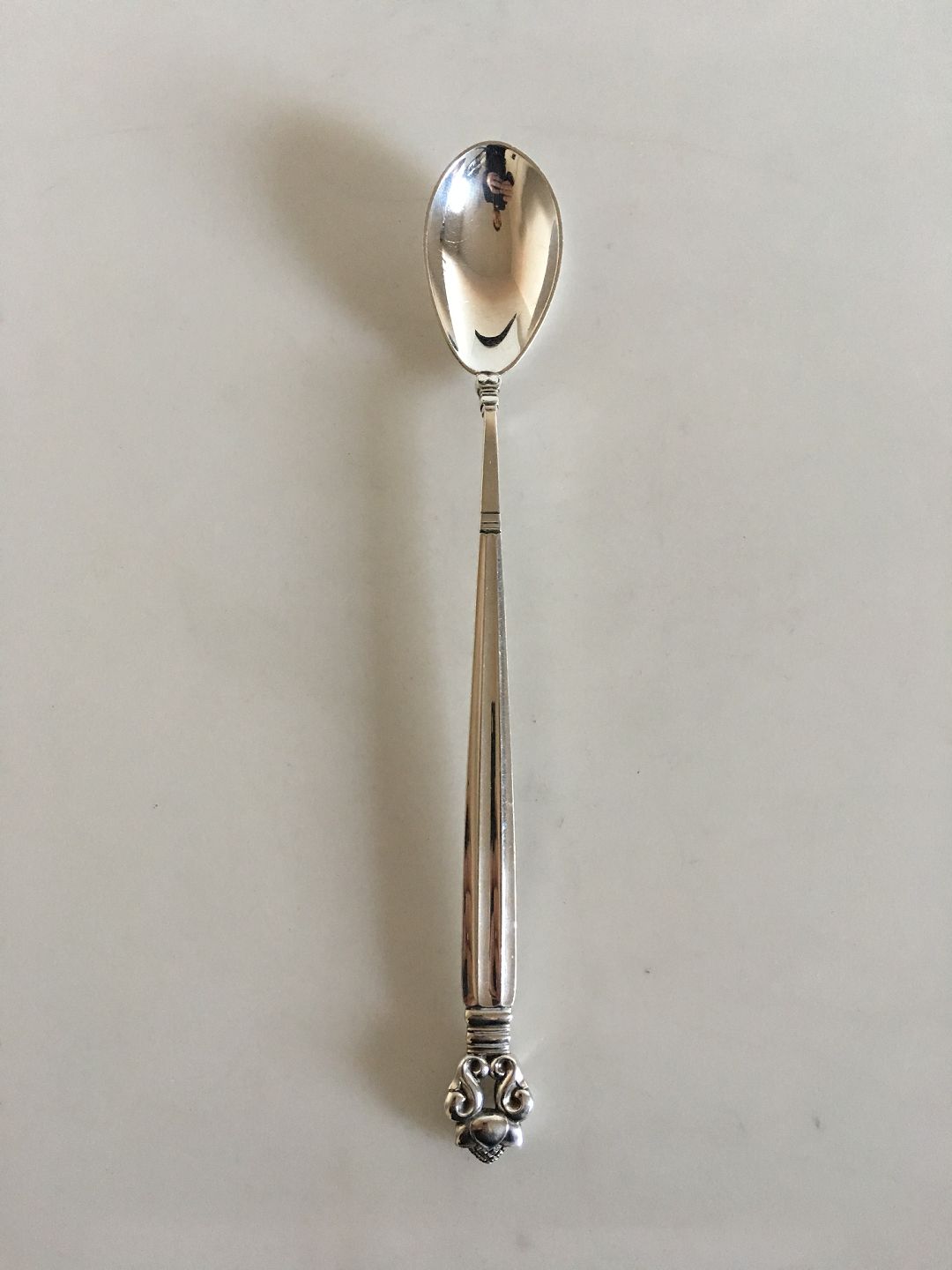 Georg Jensen Sterling Silver Acorn Long Cocktail Spoon No 037. Measures 21.2 cm / 8 11/32 in.