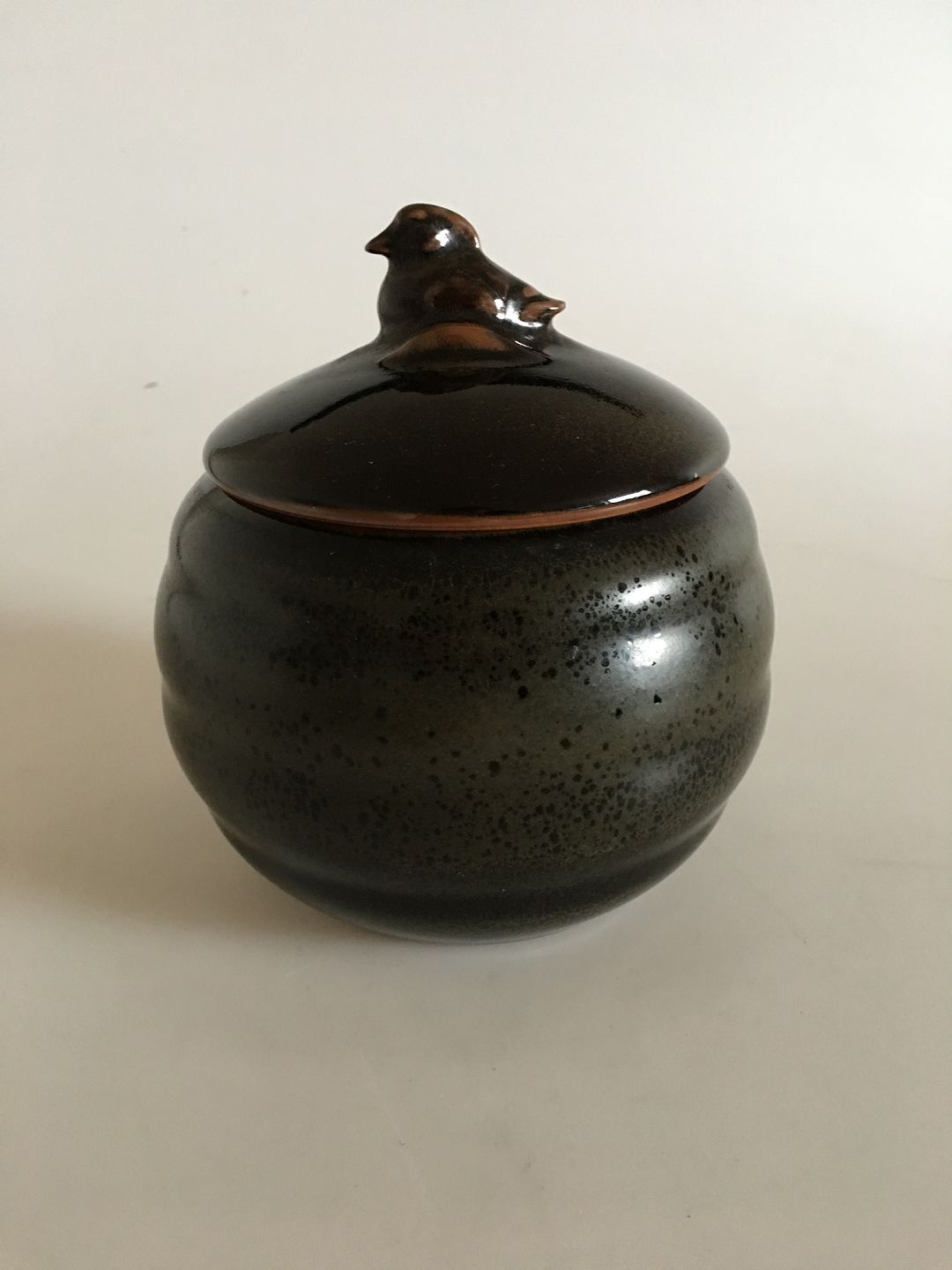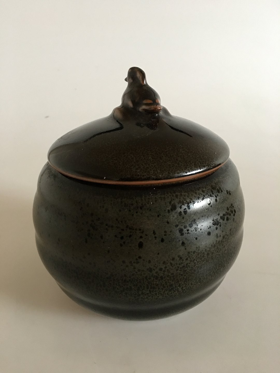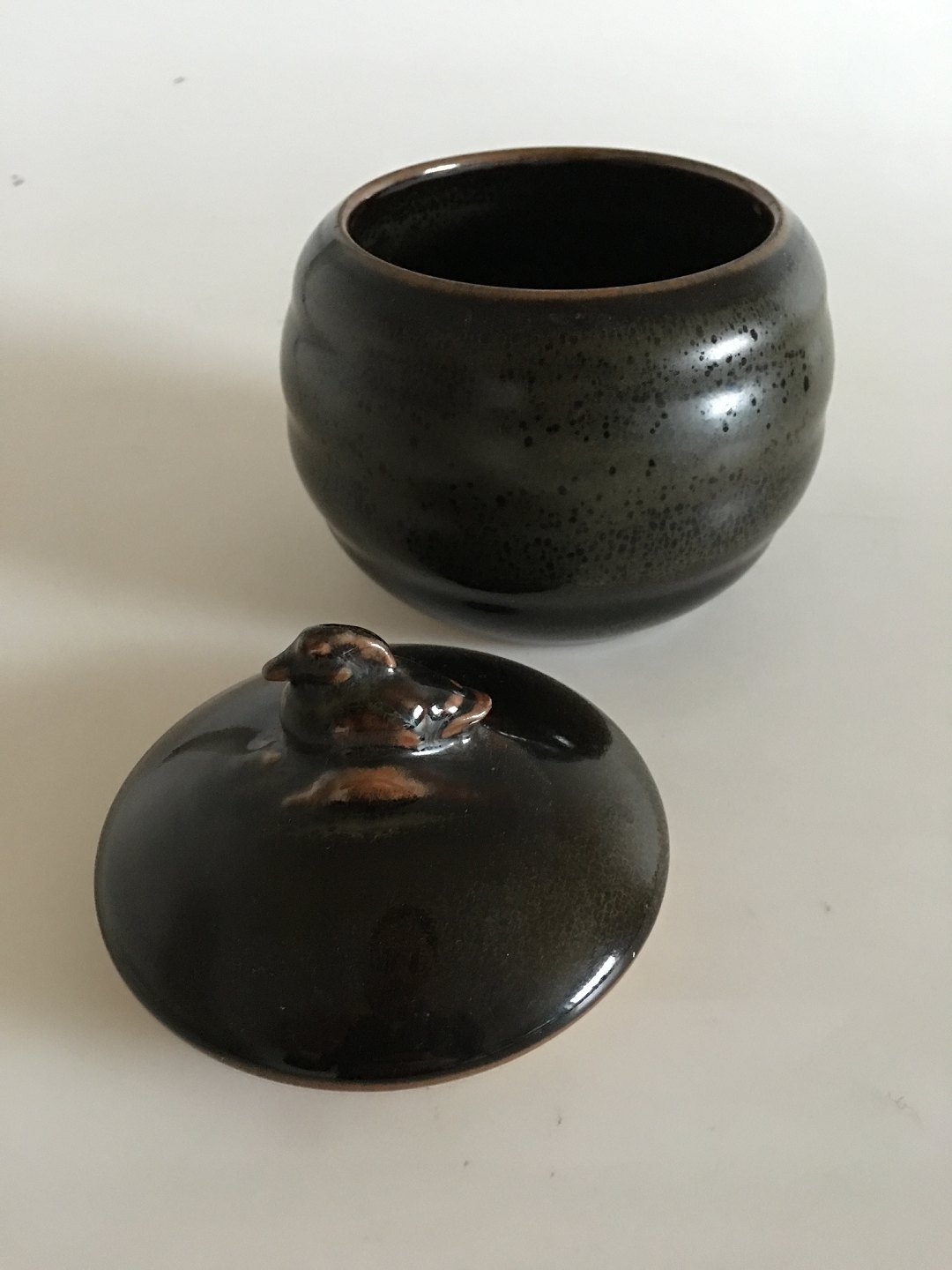 Royal Copenhagen Knud Kyhn Stoneware Pot with Lid No 20509. Beautiful glaze. The pot has a small chip / crack in the side, otherwise in nice condition. 15 cm H (5 29/32"), 14 cm dia (5 33/64")