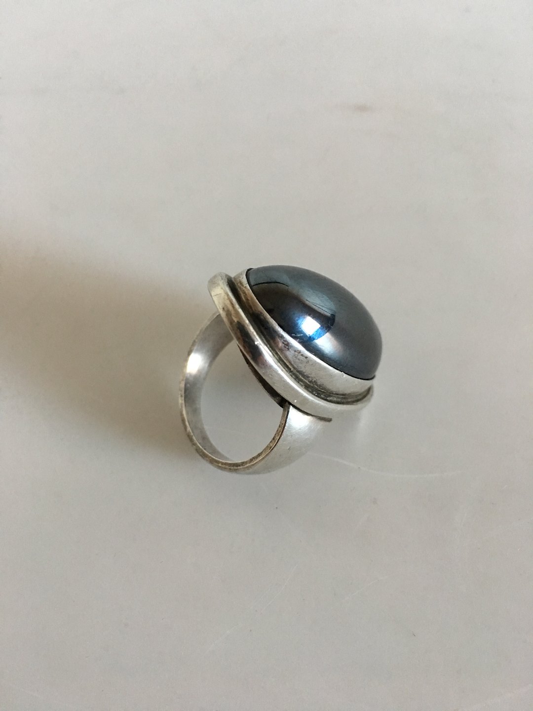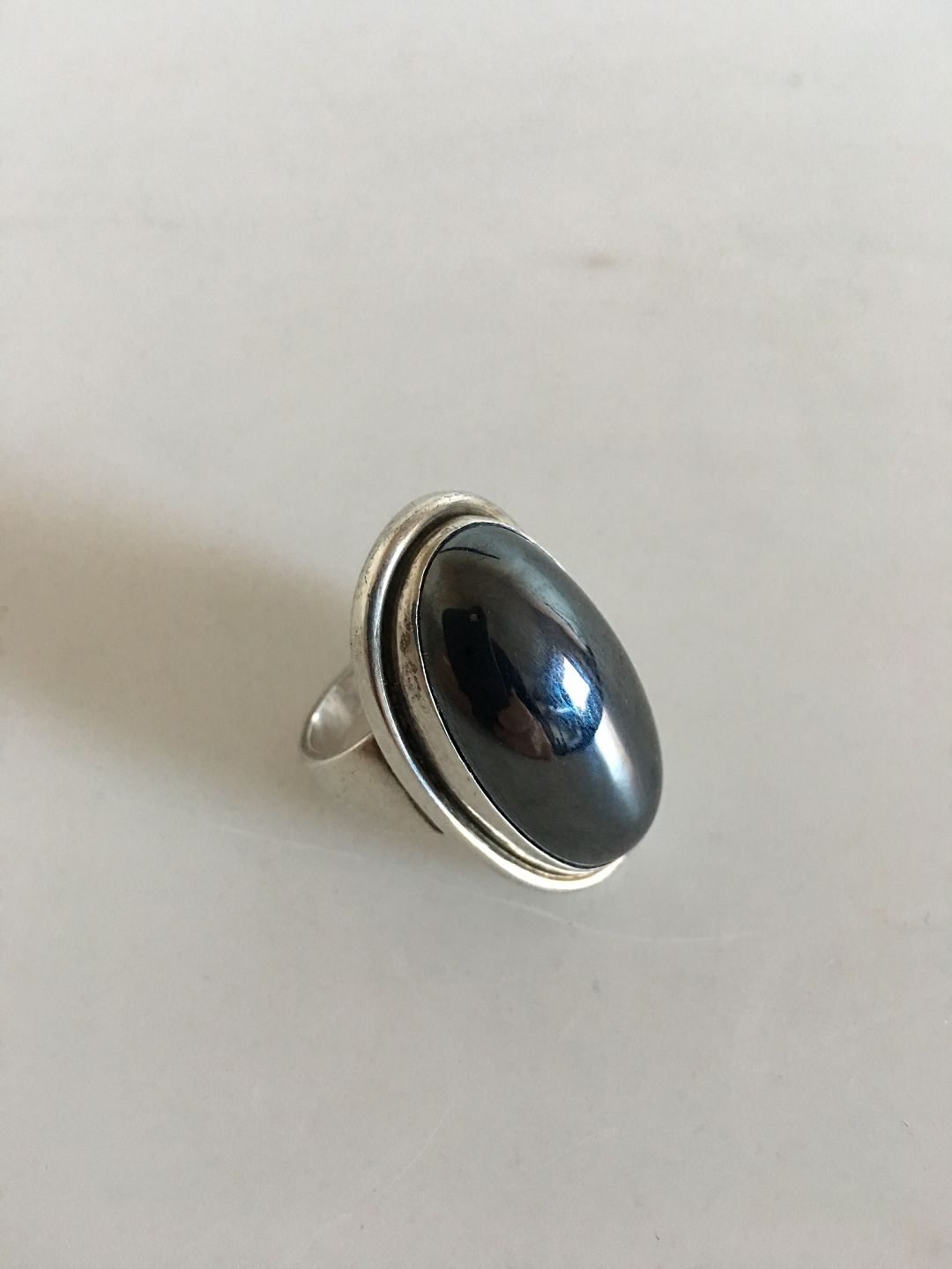 Georg Jensen Sterling Silver Ring No 46E with Hematite. Ring Size 59 / US 8 1/2. Weighs 23 g / 0.80 oz.
