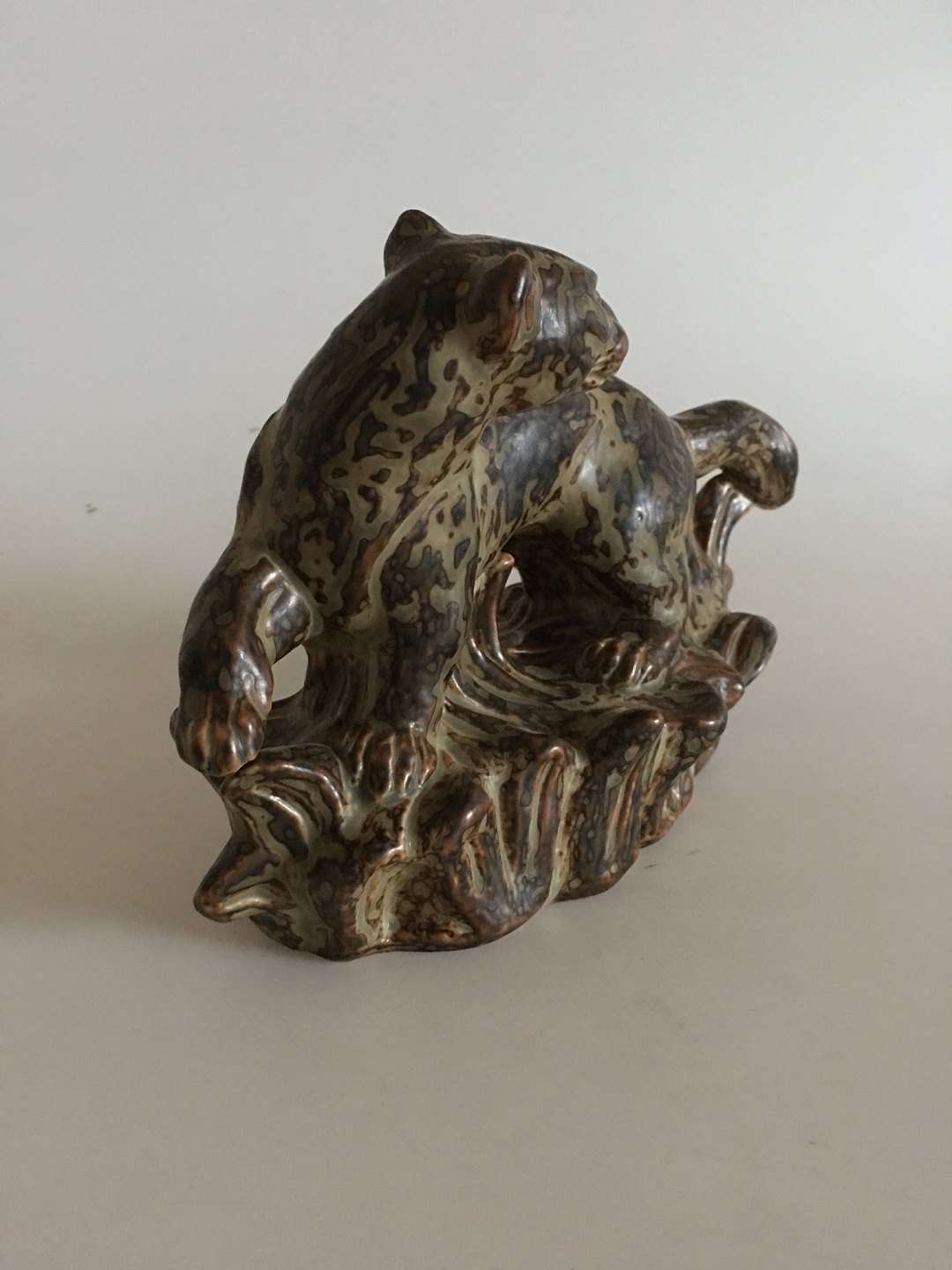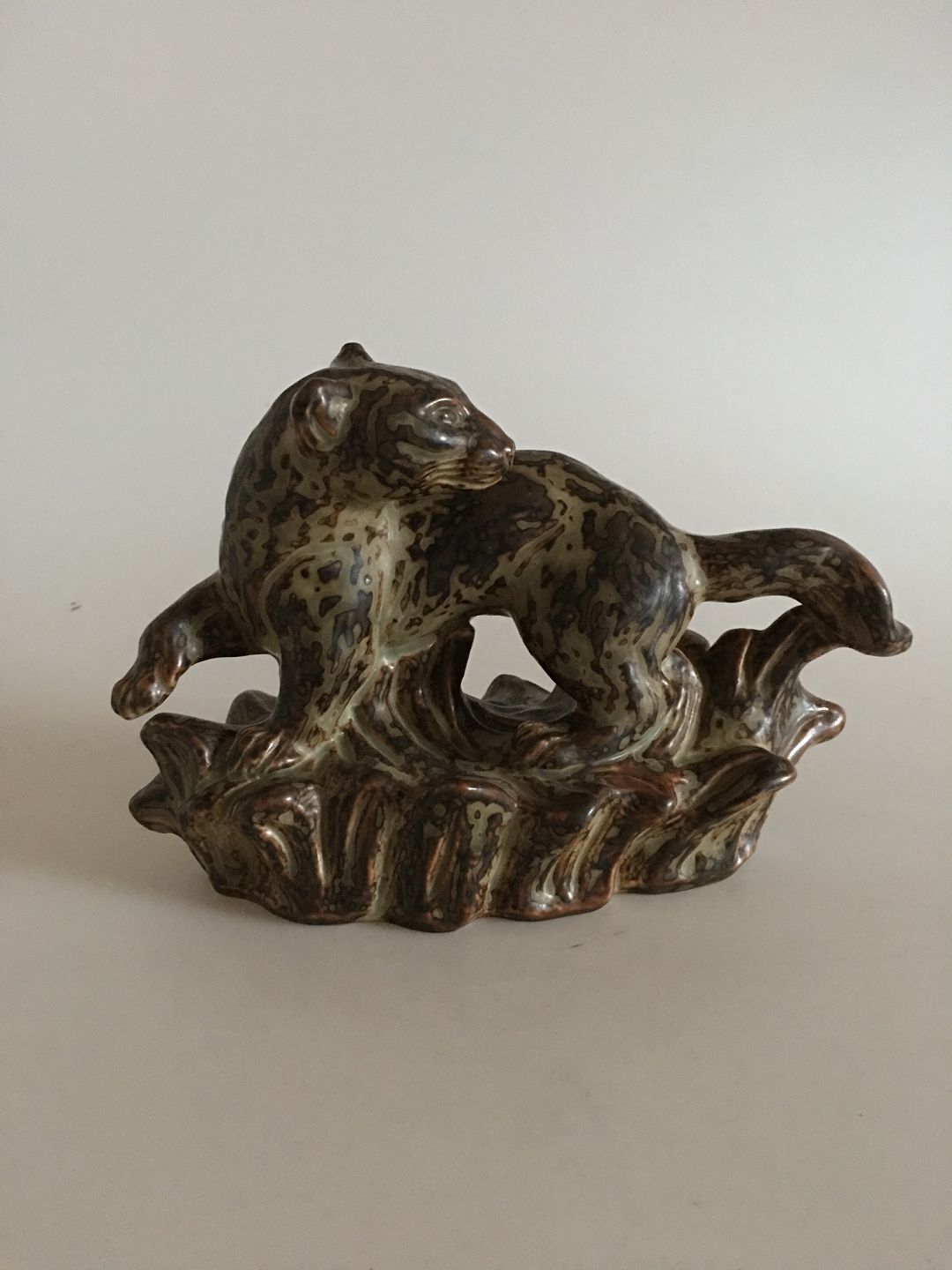 Royal Copenhagen Knud Kyhn Stentøjsfigur No. 21408 af Mårkat. Måler 23 x 15 cm. I fin stand med Sung glasur.