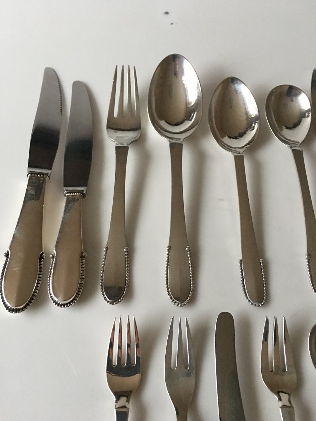 Georg Jensen Sterling Silver Beaded Flatware Set for 4 pers. 56 Pieces. The set consists of;