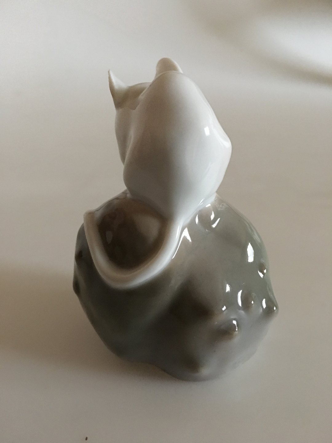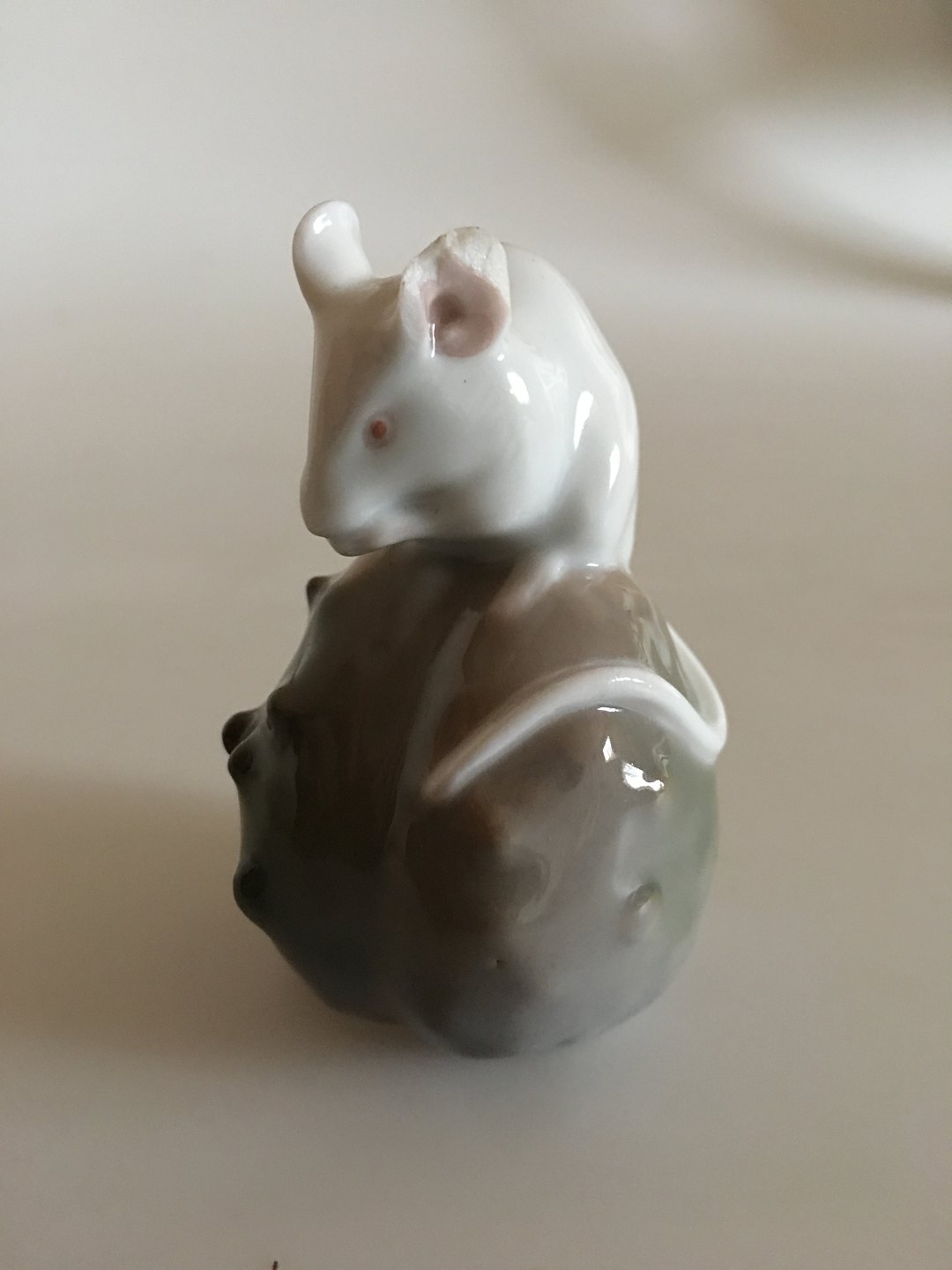 Royal Copenhagen Figurine af Mus på Grøn Kastanje No 511. 1. Sort. Musen har et skår på det ene øre, ellers i fin stand. 7 cm høj.