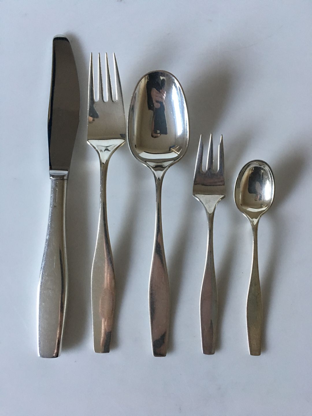 Hans Hansen Sterling Silver Charlotte Flatware Set for 12 People. 60 Pieces. The set consists of: