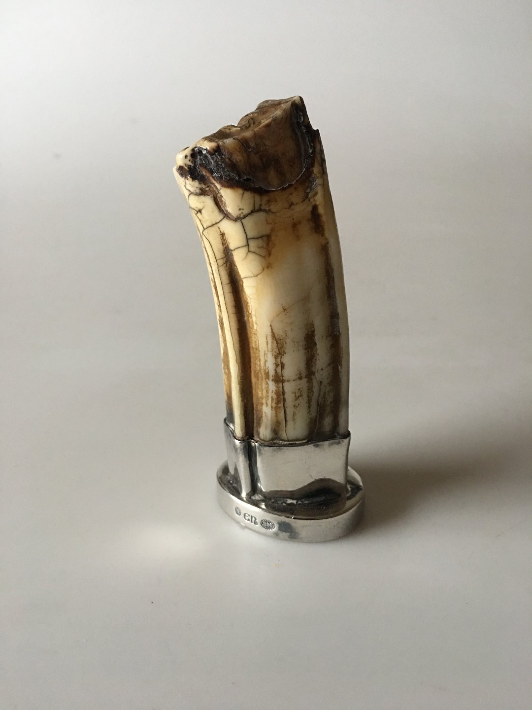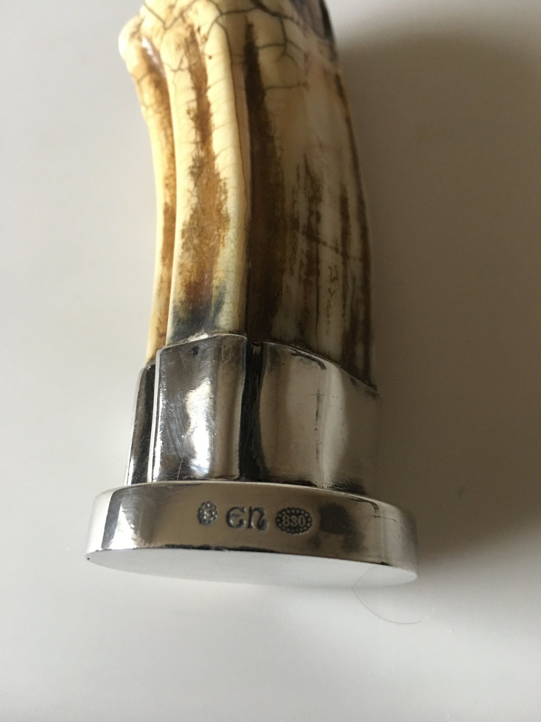 Evald Nielsen Signèt Stempel i Sølv med Flodheste Tand. 3.5 cm Ø. 10 cm H.