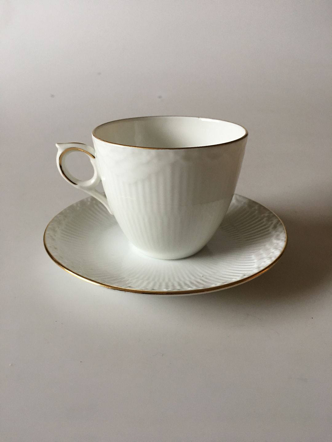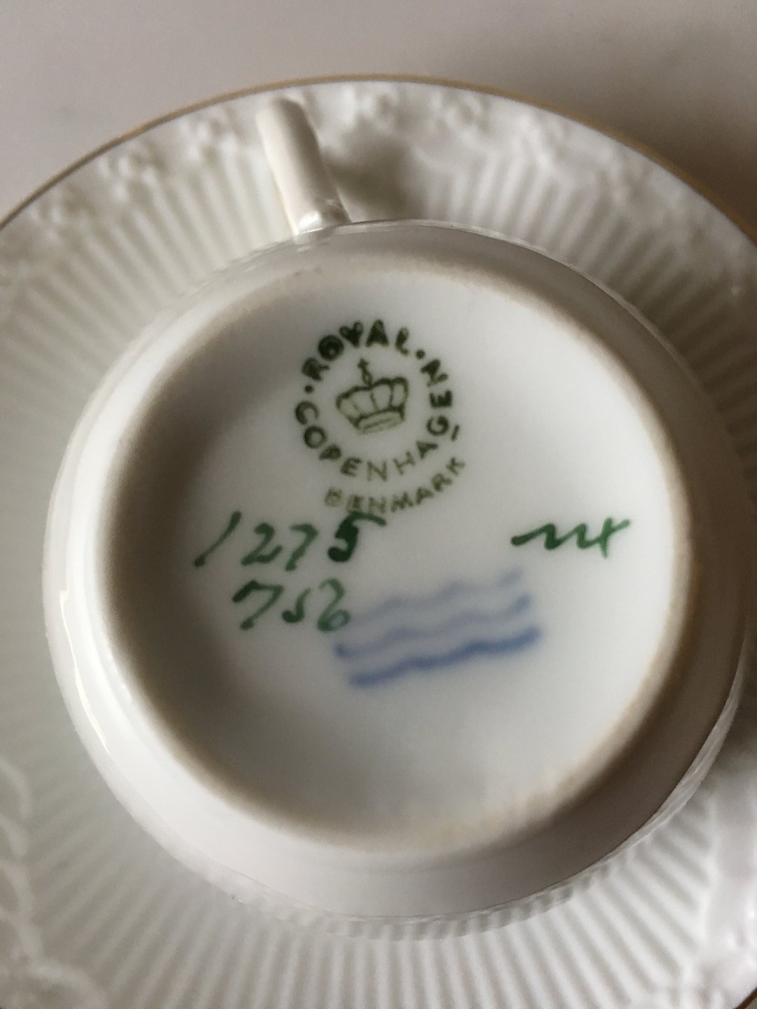 Royal Copenhagen Tradition Hvid Halvblonde m. Guldkant Kaffekop og Underkop No 1275/756. Kop måler 6,5 x 7,5 cm. I fin og hel stand