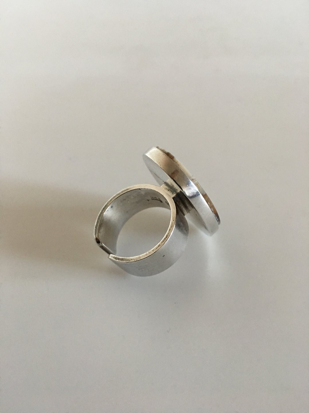 Georg Jensen Sterling Silver Ring No 188A with Coffee / Creme Colored Stone. From after 1945. Ring Size 55 / US 7. Weighs 18 g / 0.65 oz.