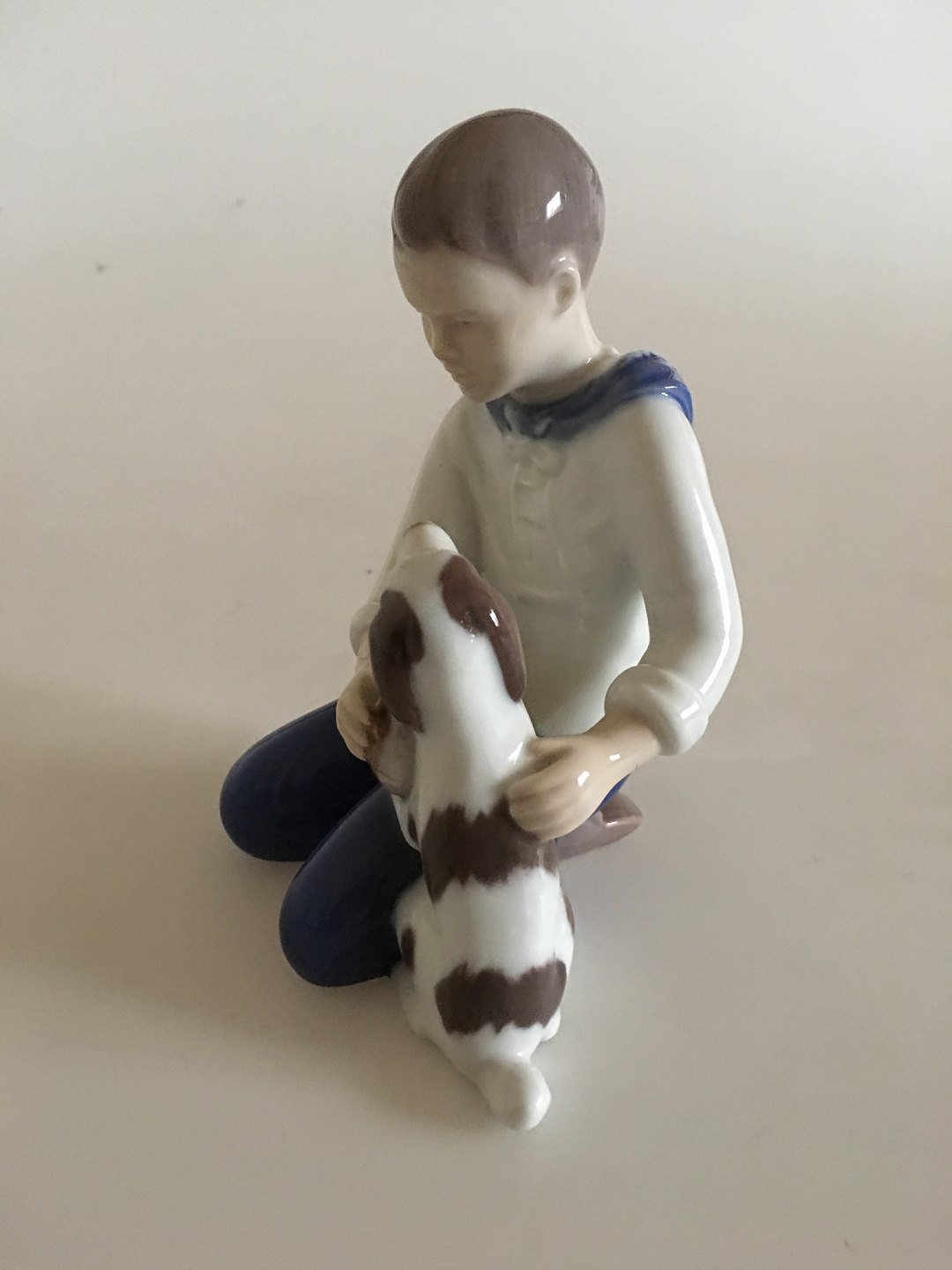 Bing & Grøndahl Figurine No 2334 Dreng der børster sin hund. 1. Sortering. I fin stand. 12 cm H.