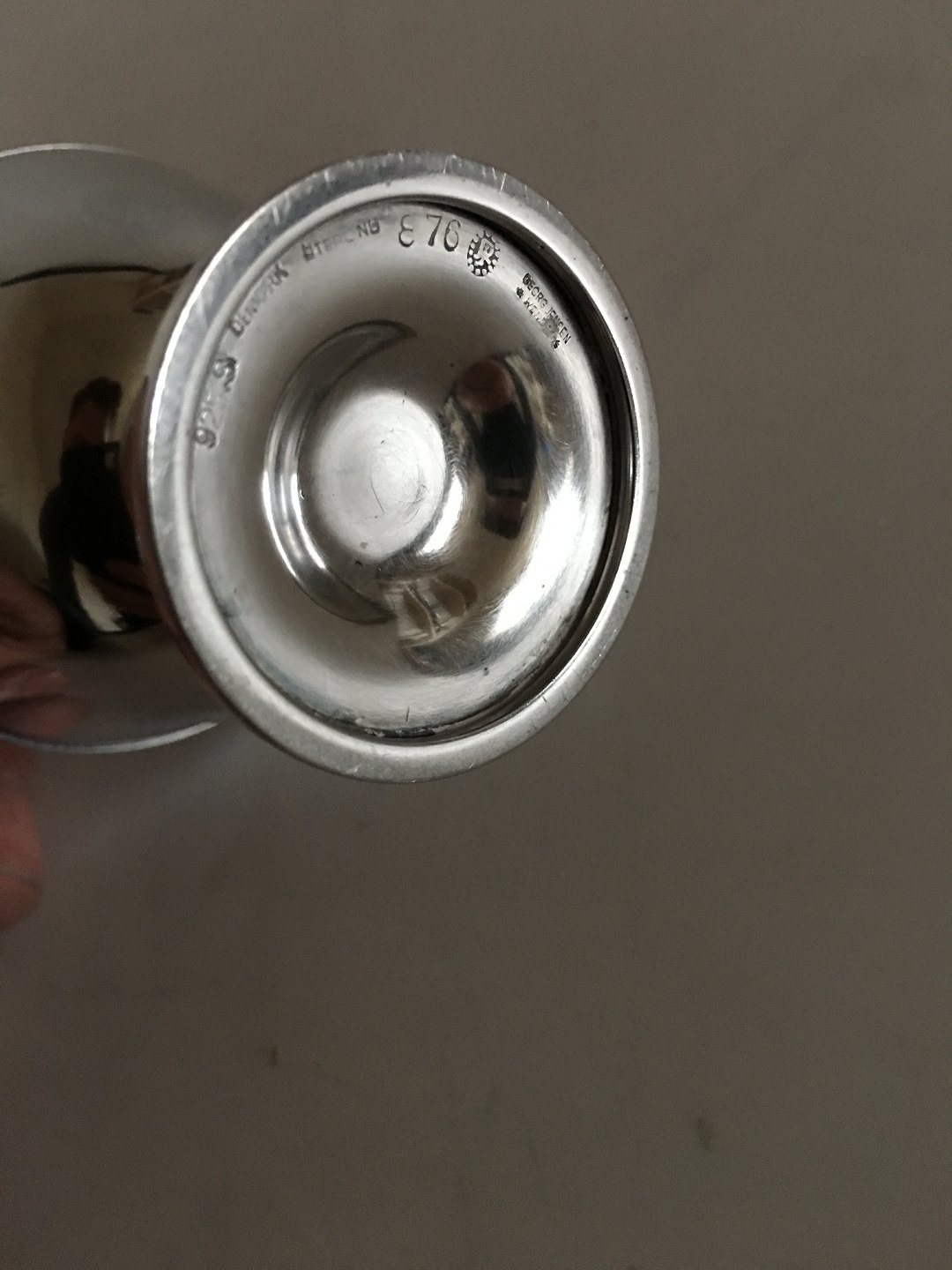 Georg Jensen Sterling Sølv Johan Rohde Rune Sennepsbæger No 876 med Blå Emalje. 7 cm Høj. 5.5 cm Ø. Vejer 83 gram. Stemplet Georg Jensen & Wendel fra 1945-1951. I fin stand.