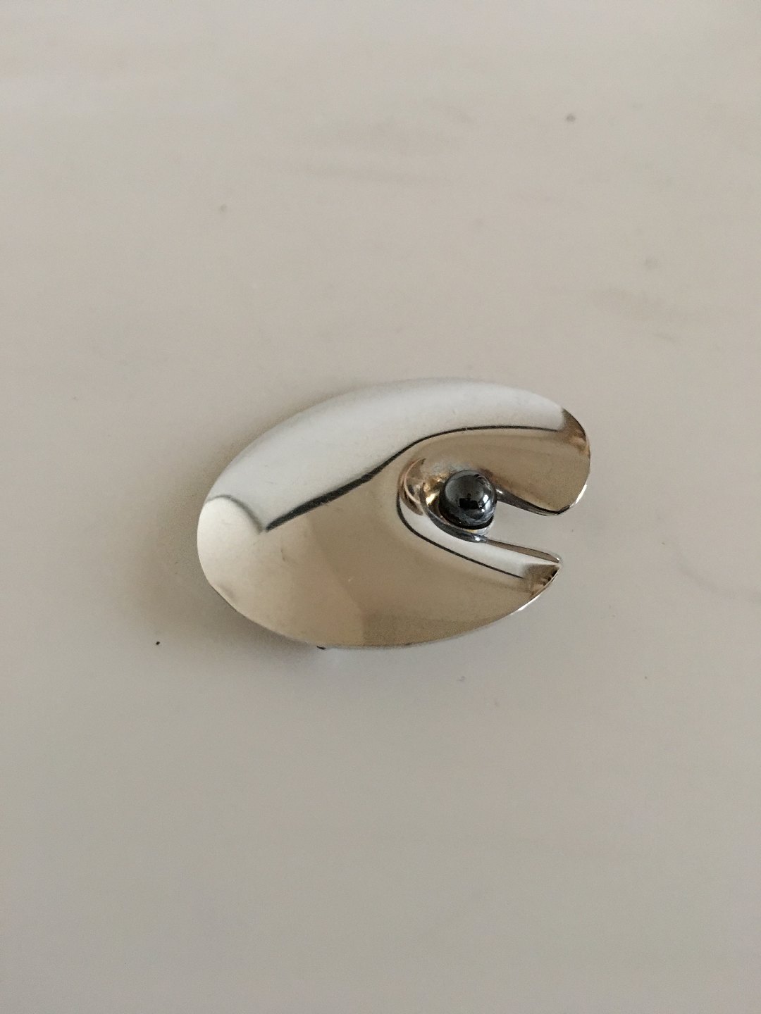Georg Jensen Sterling Silver Nanna Ditzel Brooch No 351 with Hematite Stone