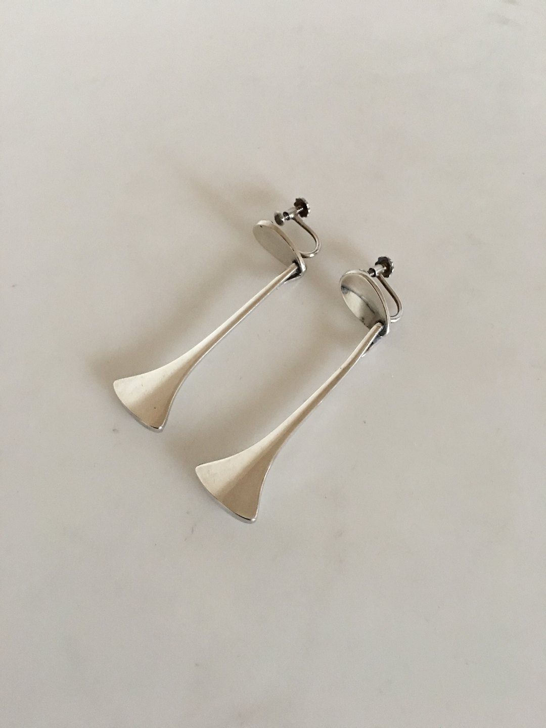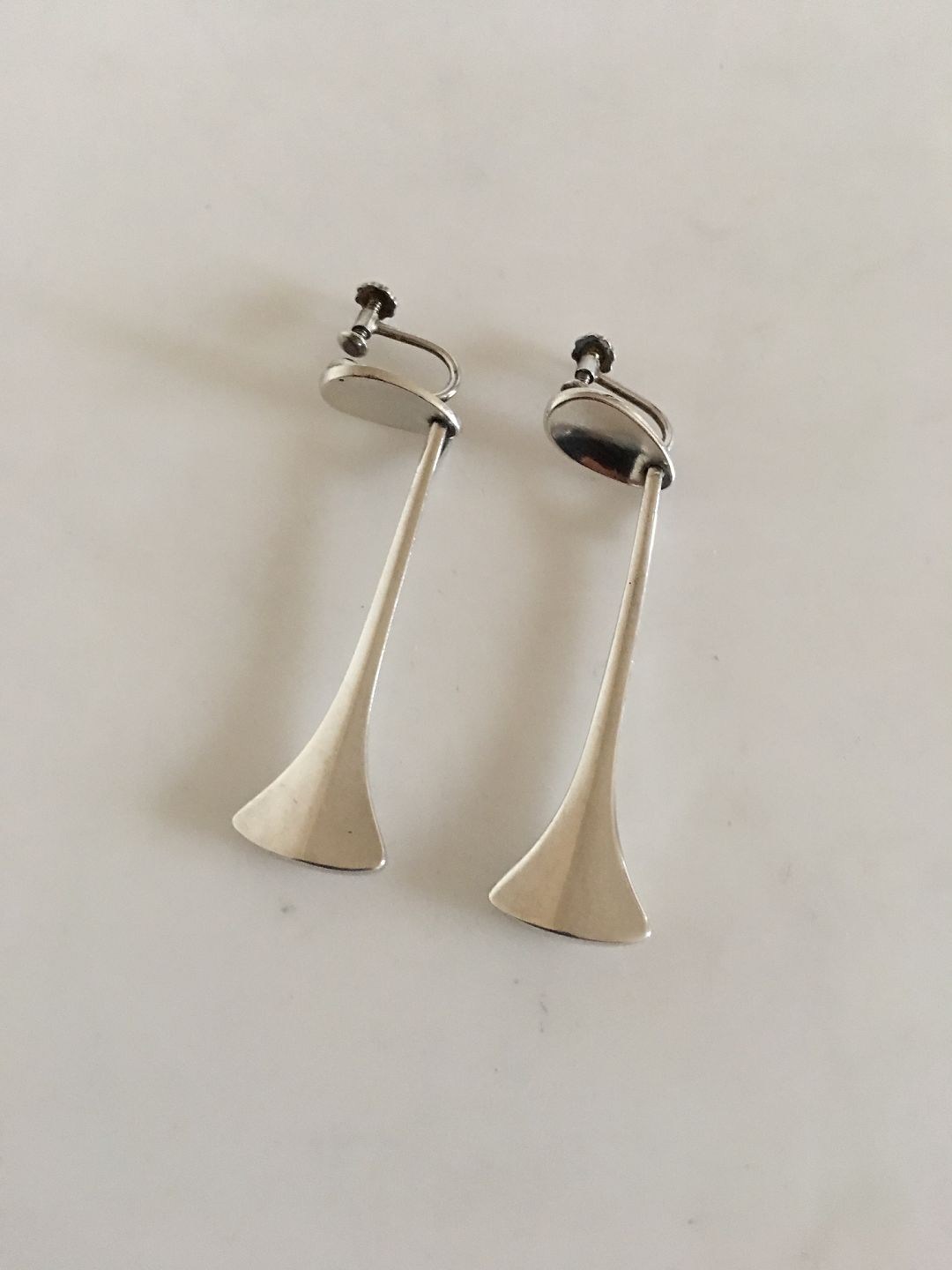 Hans Hansen Sterling Sølv Øreringe No 444. Øreskruer. Måler 6 cm. Vejer tilsammen 15 gram. I fin stand.