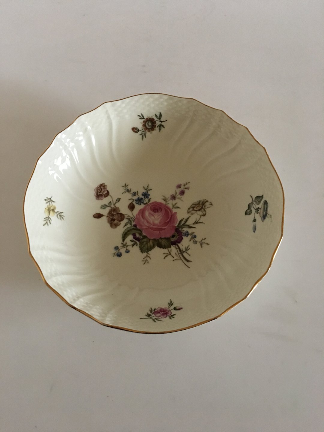 Royal Copenhagen Frijsenborg Round Salad Bowl No 1518. 21 cm dia. 5.5 cm H. In perfect condition. Creme colored with flower motifs named after the nobel county of Frijsenborg
