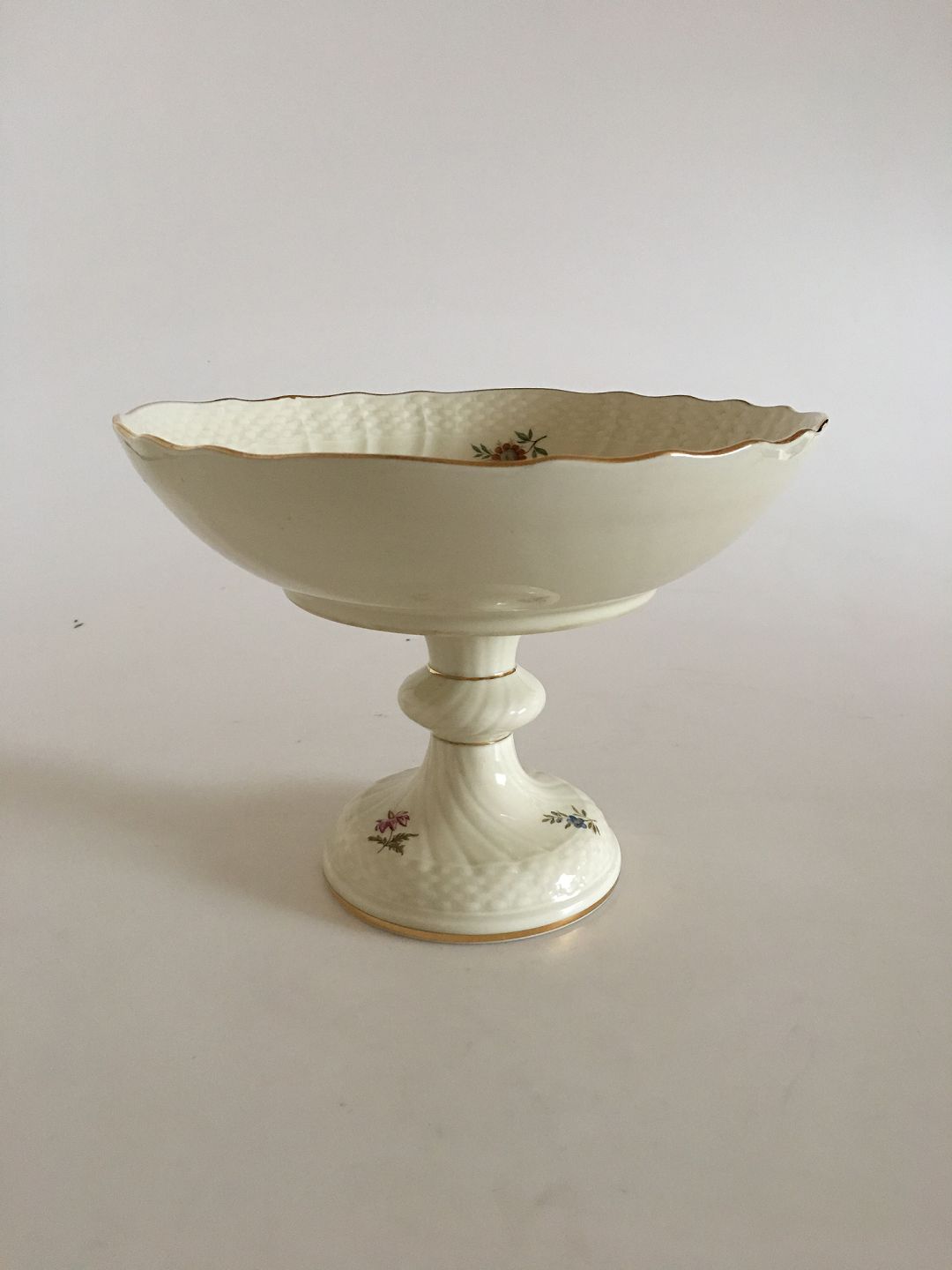 Royal Copenhagen Frijsenborg Cake Bowl on Tall Foot No 1528. 15.5 cm H. 21 cm dia. Creme colored with flower motifs named after the nobel county of Frijsenborg