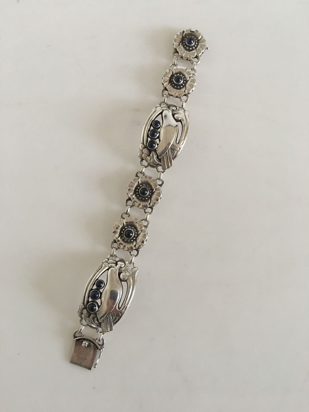 Georg Jensen Sterling Sølv Armbånd No 23 med Fugle og 10 Syntetiske Safirer. Måler 18 cm. Vejer 39 gram. Fra efter 1945. I flot stand.