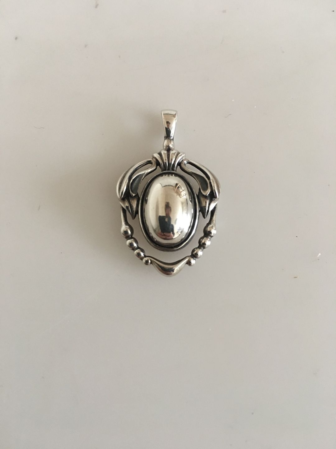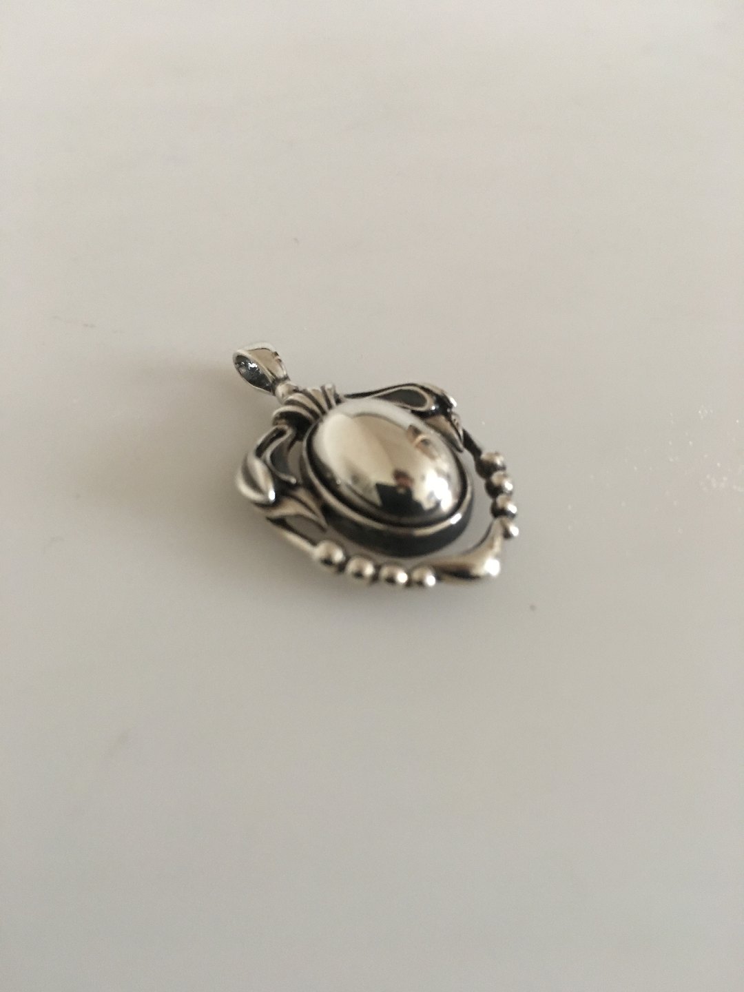 Georg Jensen Sterling Silver 2014 Annual Pendant with Silver Stone. Measures 3 cm (1 3/16"). Weighs under 5 grams.