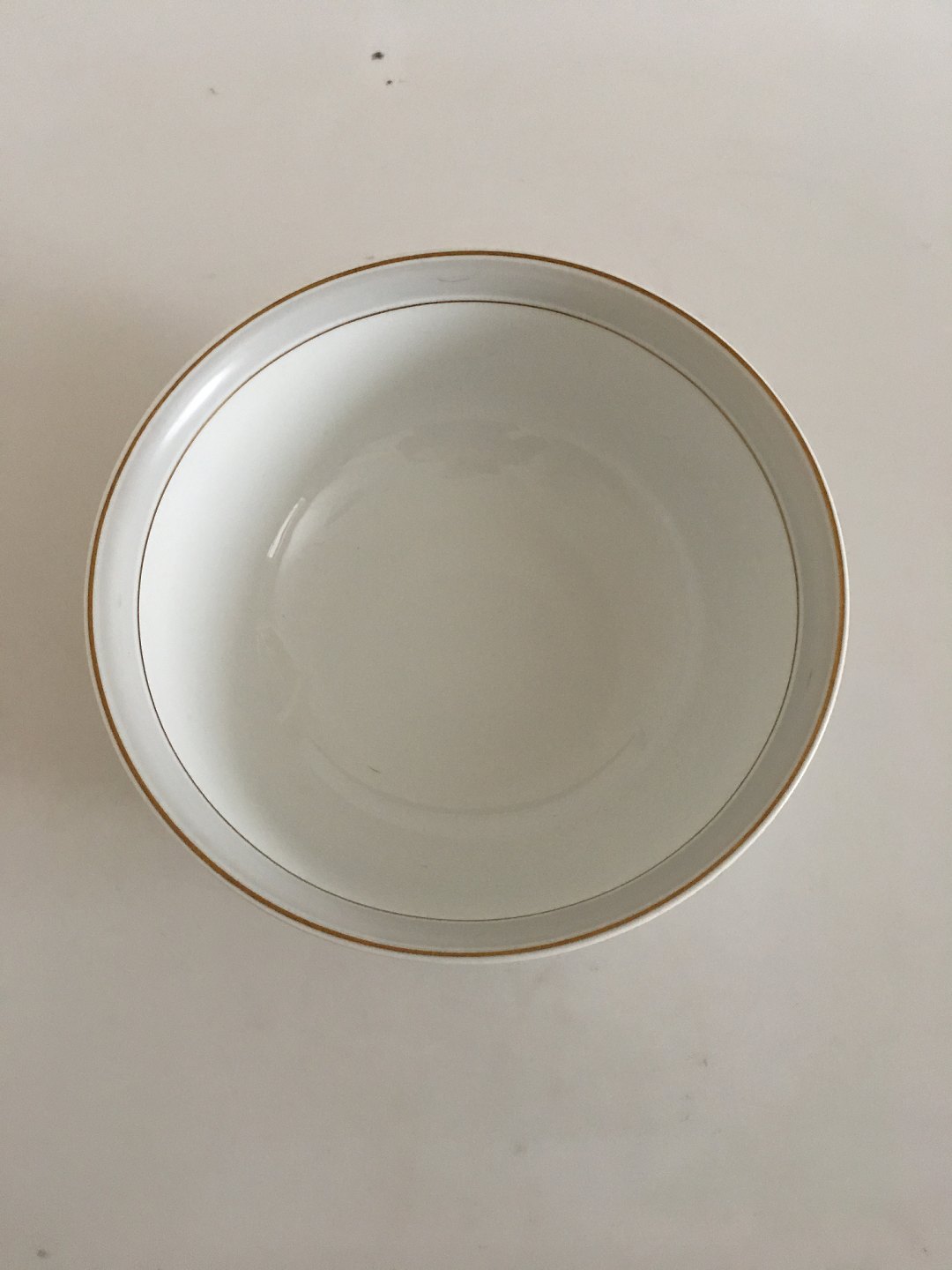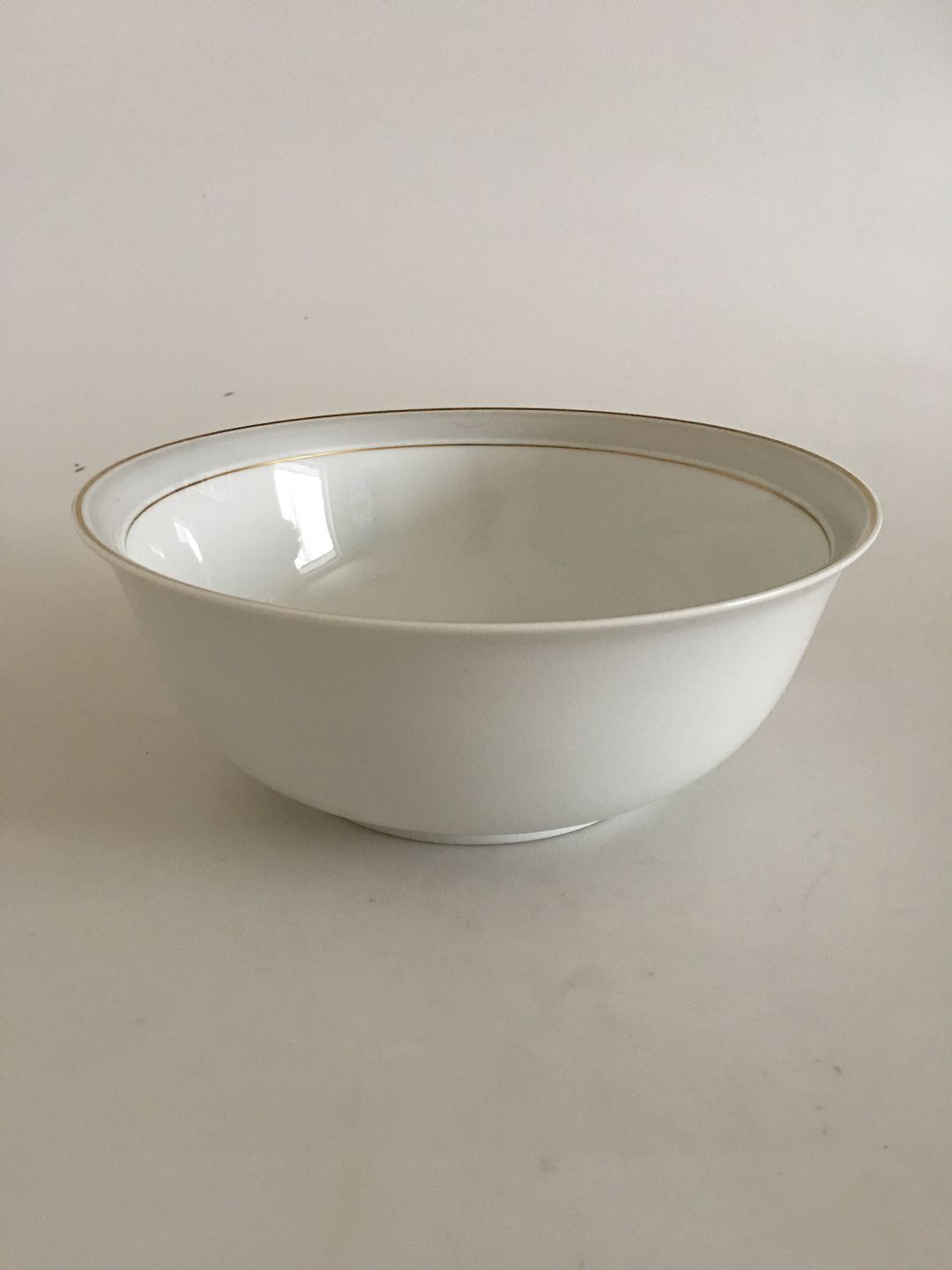 Bing & Grondahl Tiber Bowl No 43. 8.5 cm H (3 11/32"). 22 cm dia (8 21/32"). White with Light Grey Border and Gold Edge.