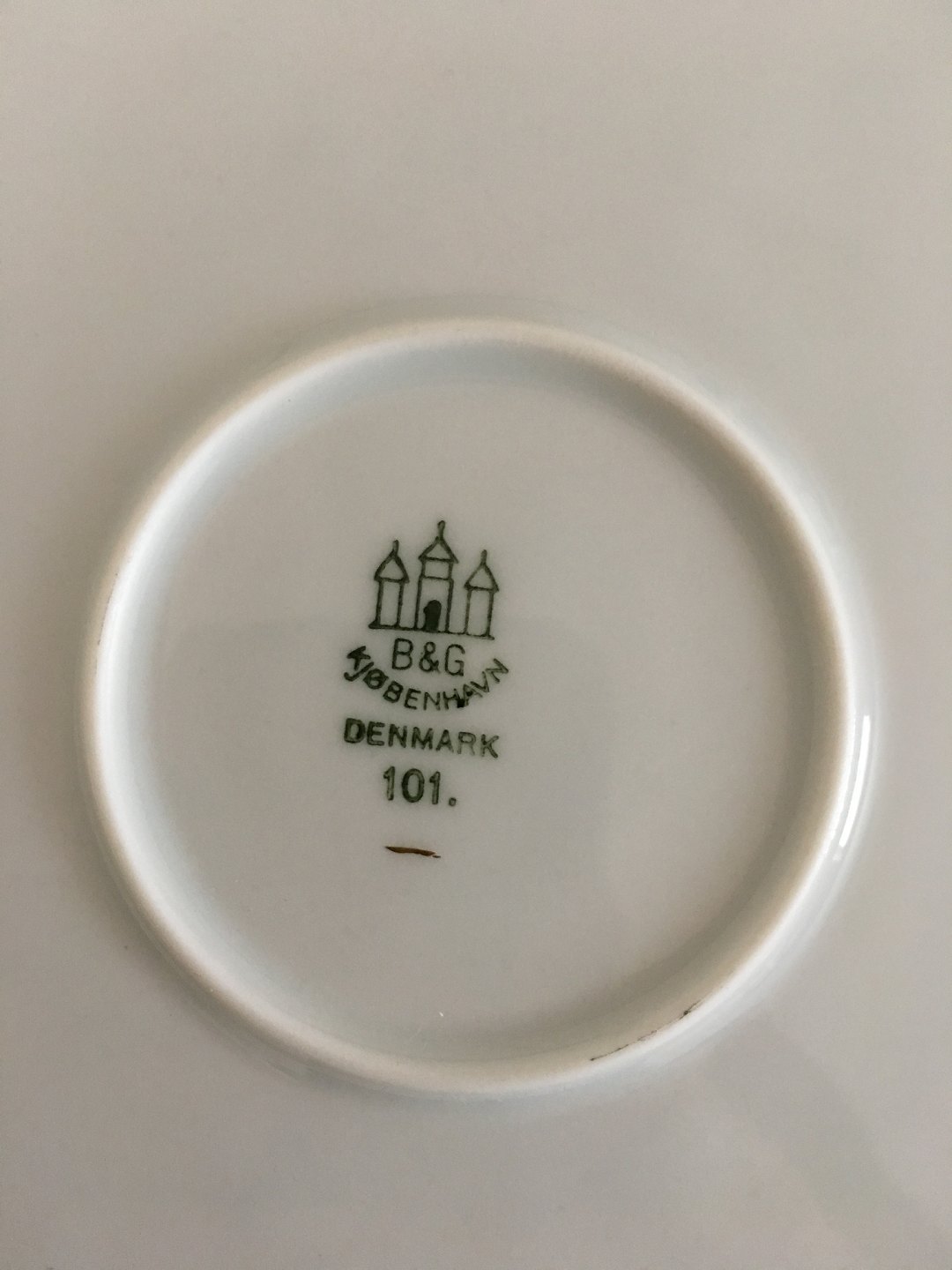 Bing & Grondahl Tiber Cake Dish No 101. 24.5 cm dia (9 41/64"). White with Light Grey Border and Gold Edge.