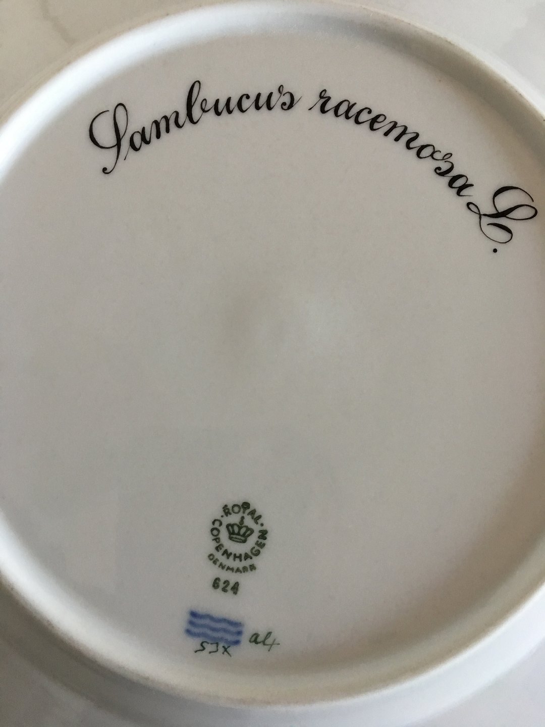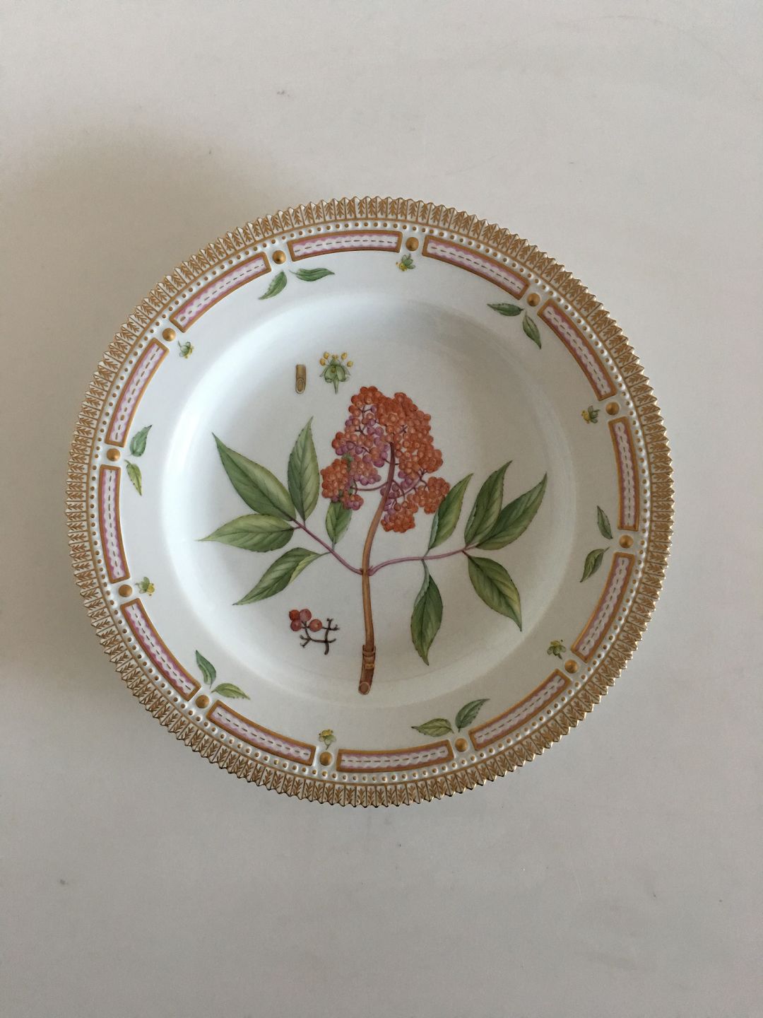 Royal Copenhagen Flora Danica Spisetallerken No 624. 26 cm Ø. 1. Sortering. I perfekt stand. Latinsk Navn: Sambucus Racemosa (Drue Hyld).