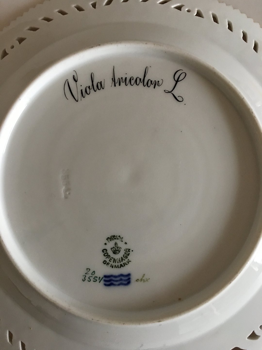 Royal Copenhagen Flora Danica Pierced Luncheon Plate No 20/3554. 23 cm (9 1/16"). Latin Name: Viola Tricolor. With old marks from 1923-1934.