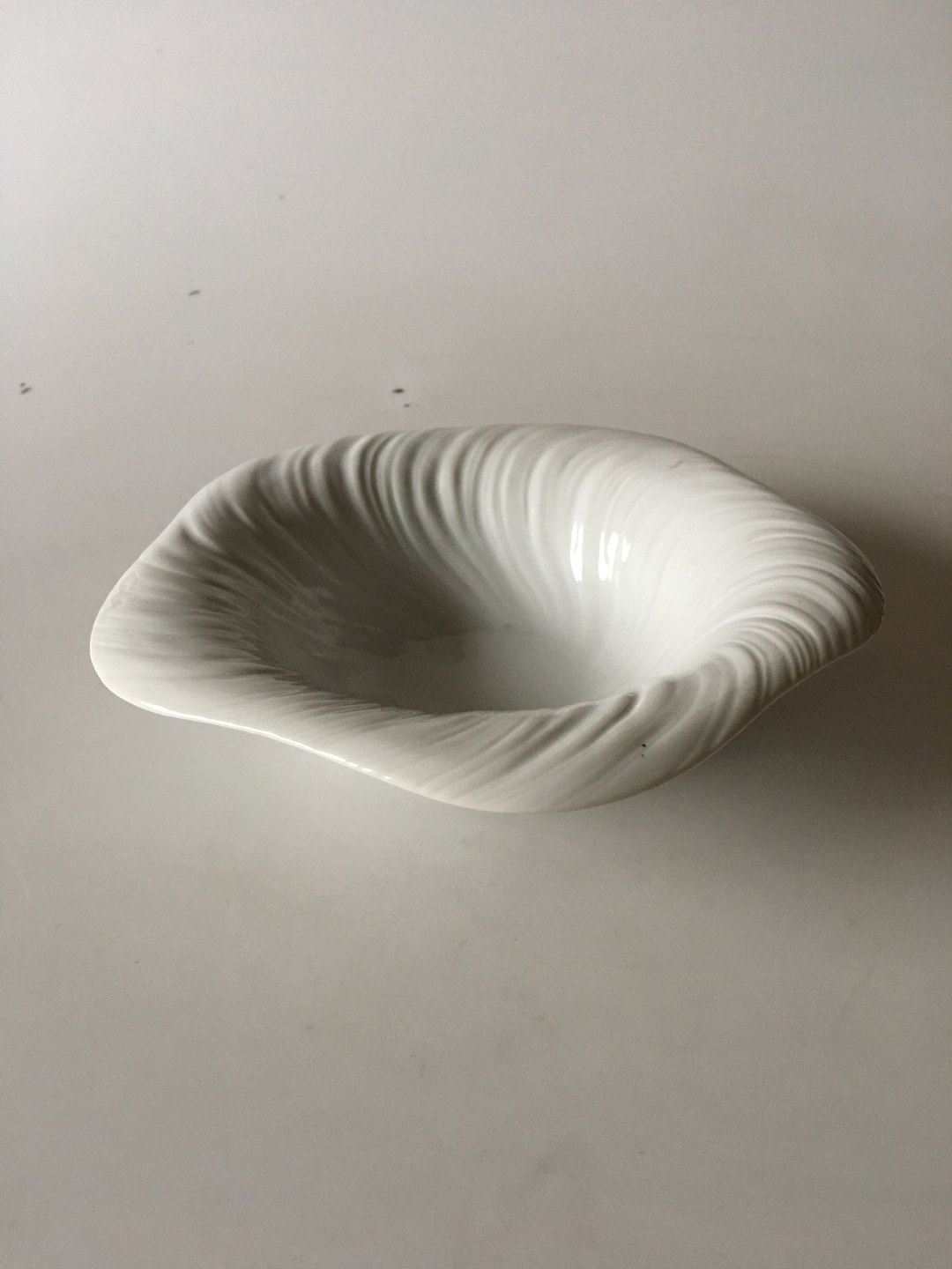 Royal Copenhagen White Triton Deep Plate / Bowl No 14173(604). Measures 20.5 cm dia (8 5/64 in.). 6 cm H (2 23/64 in.). Designed by Arje Griegst. 1st quality.