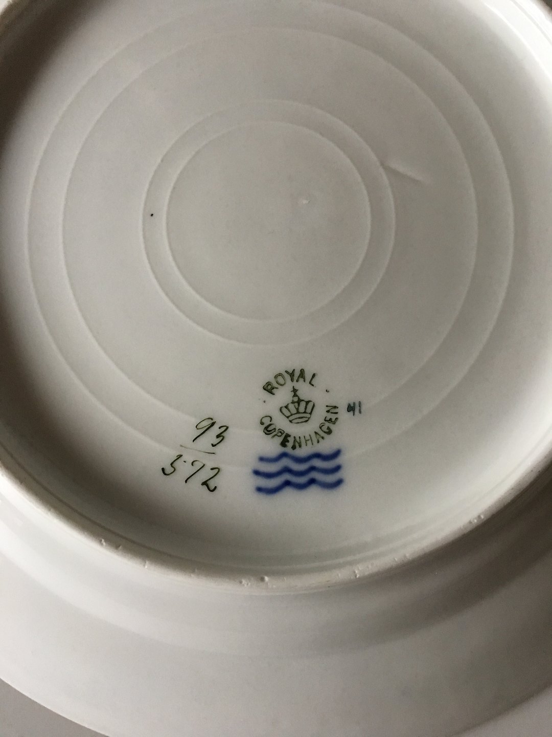 Royal Copenhagen No 93. White Half Lace w. Flowers and Gold Luncheon Plate. 22 cm dia (8 21/32"). In good whole condition with a few marks. The gold has wear to it. Rare handpainted dinner service from 1894-1898.