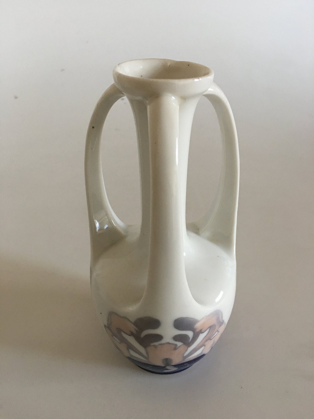 Royal Copenhagen Art Nouveau Vase with Three Handles No 290/60B. With Seaweed Motif. 18 cm H (7 3/32"). 2nd Quality, Has a small incorrectness at the top edge of the vase.