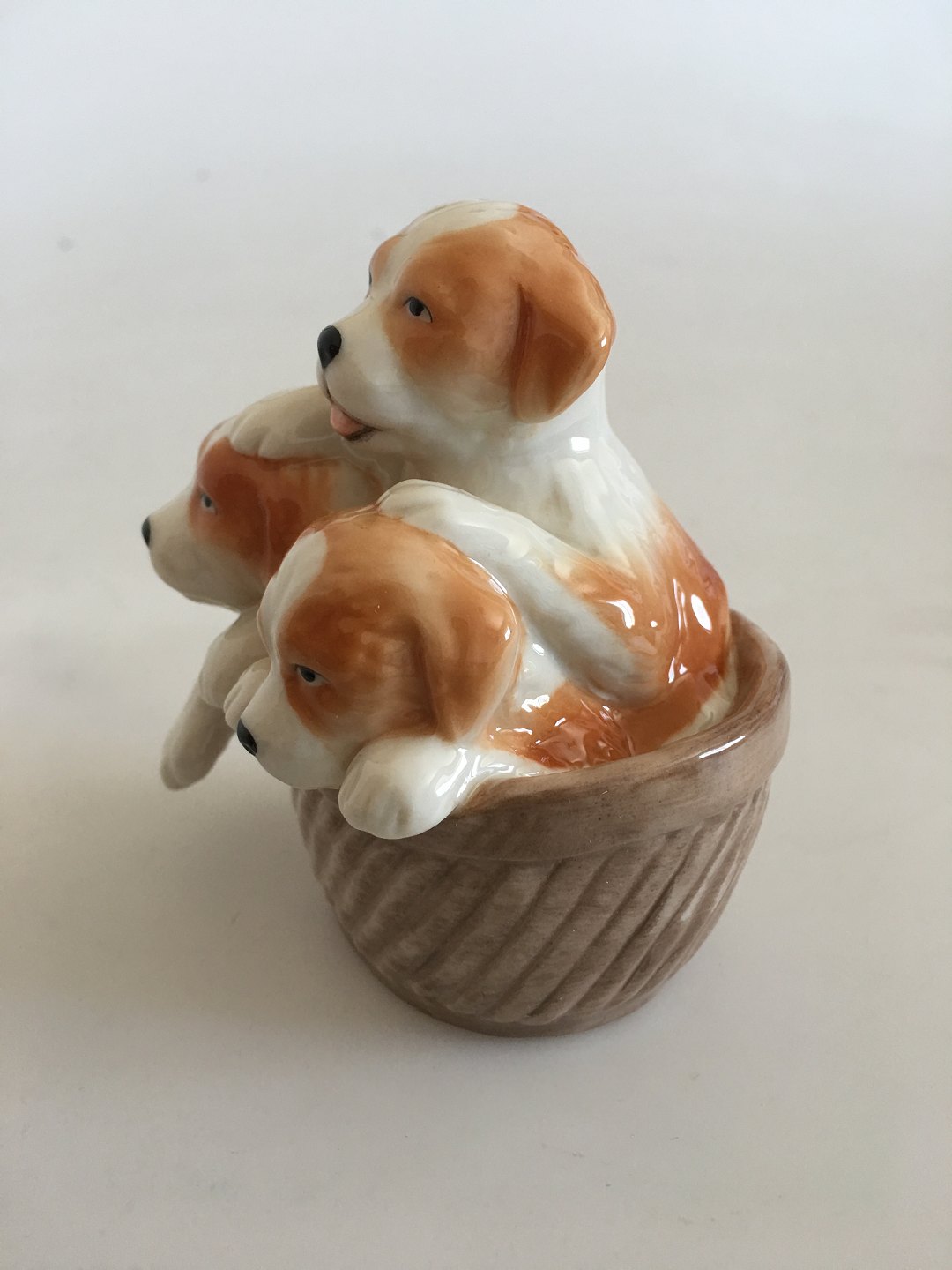 Royal Copenhagen "Puppy Collection" Figurine af Tre Gadekryds i Kurv No 745. Kreeret af Allan Therkelsen. I perfekt stand og i original æske. 8 cm Høj