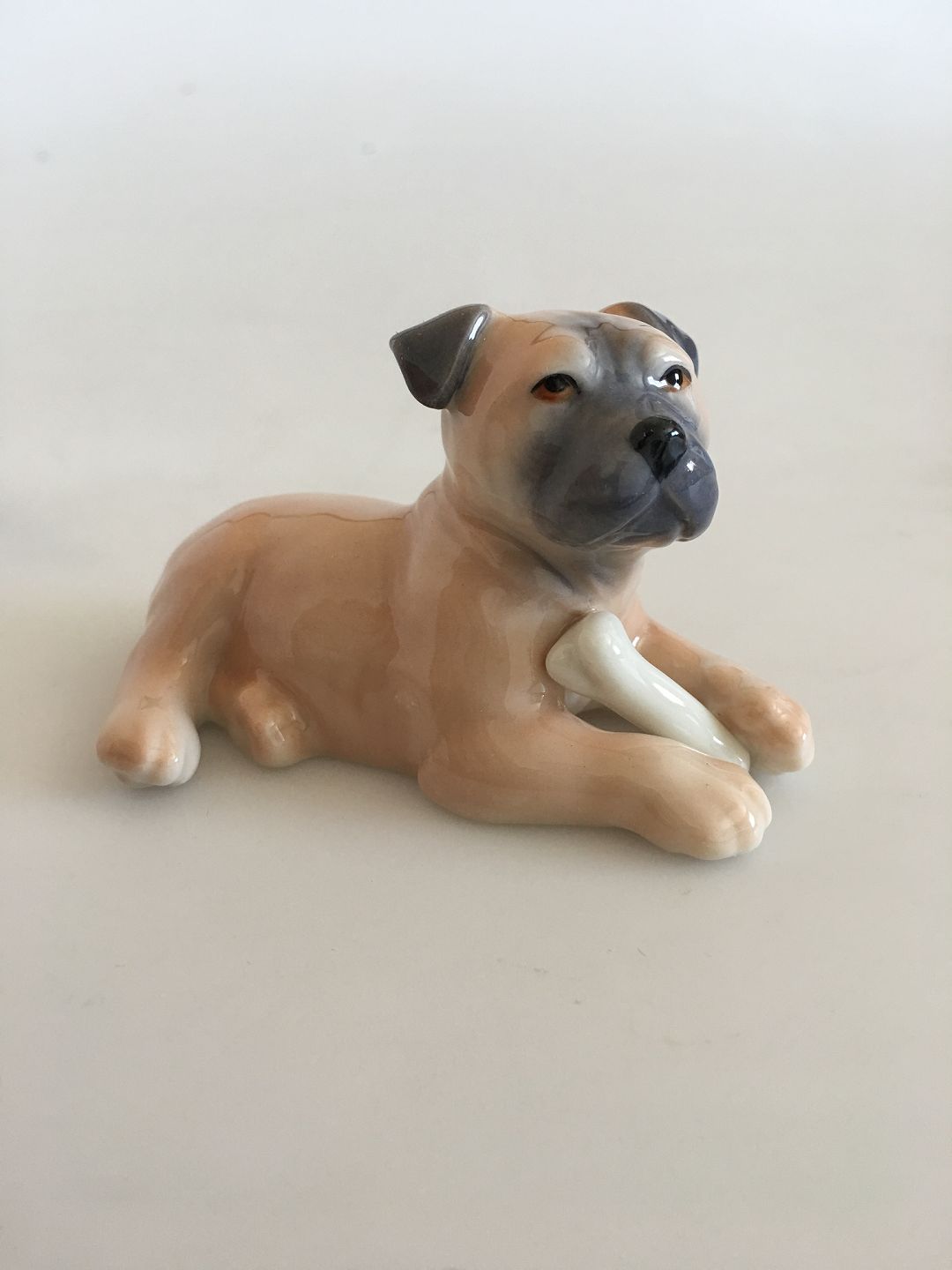 Royal Copenhagen "Puppy Collection Boxer Figurine No 748. Kreeret af Allan Therkelsen. 8 cm L. I perfekt stand og i original æske.