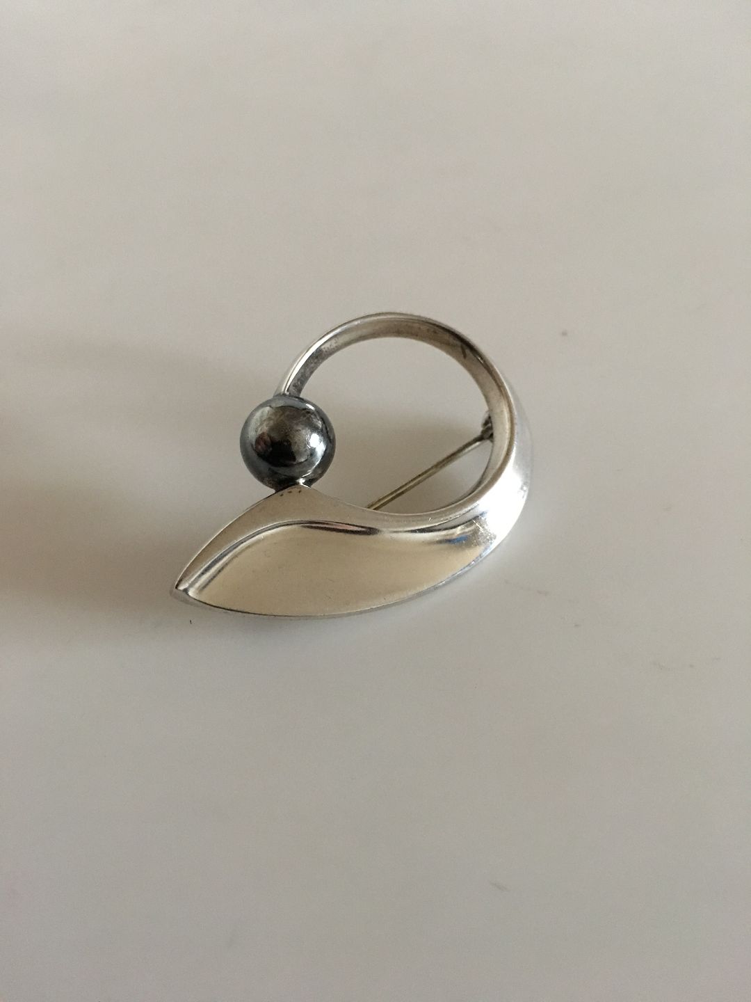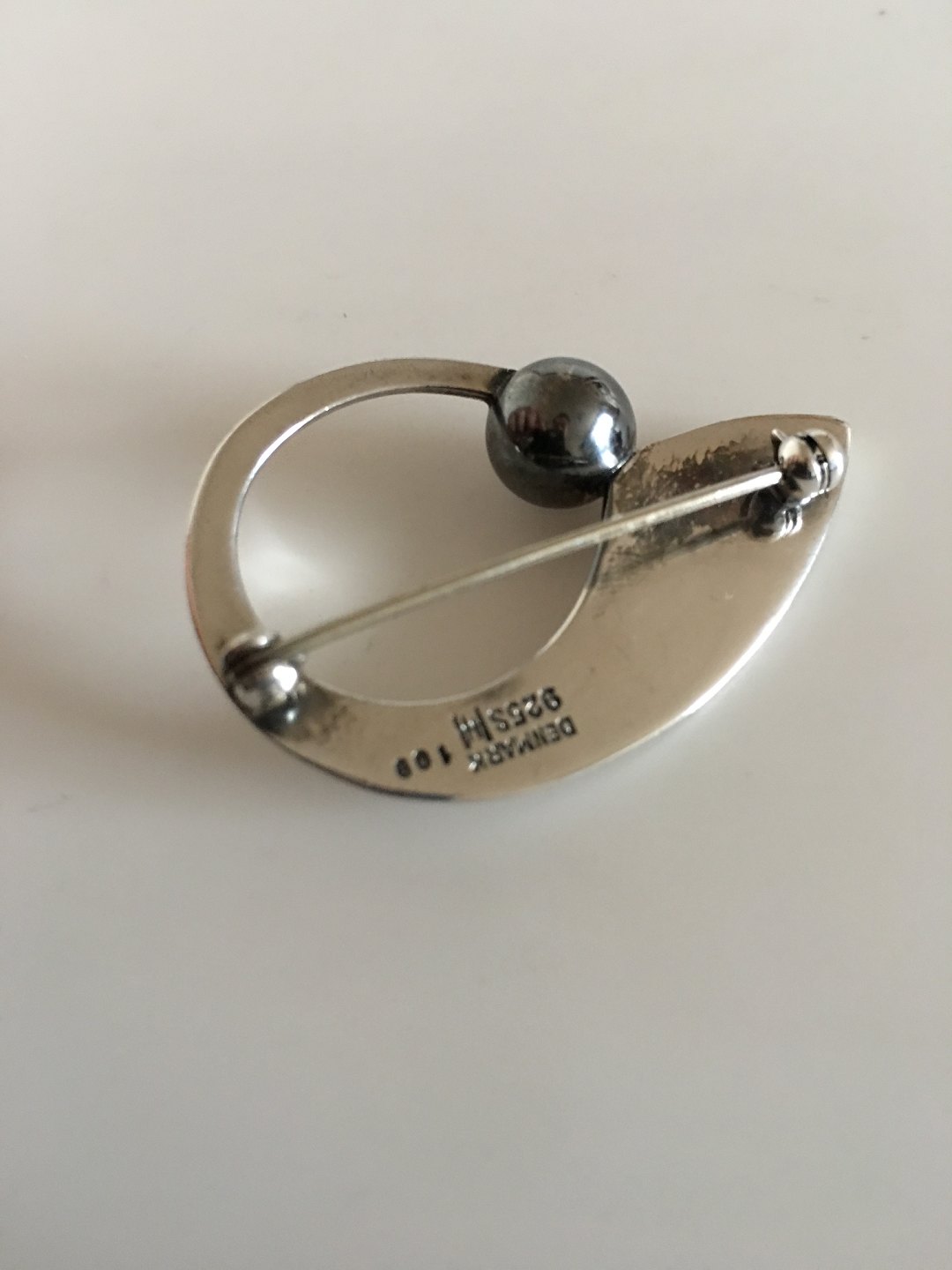 Hans Hansen Sterling Silver Brooch with Oxidized Silver Stone No 109. Measures 4 cm / 1 37/64 in. Weighs 12 g / 0.42 oz. In nice condition.