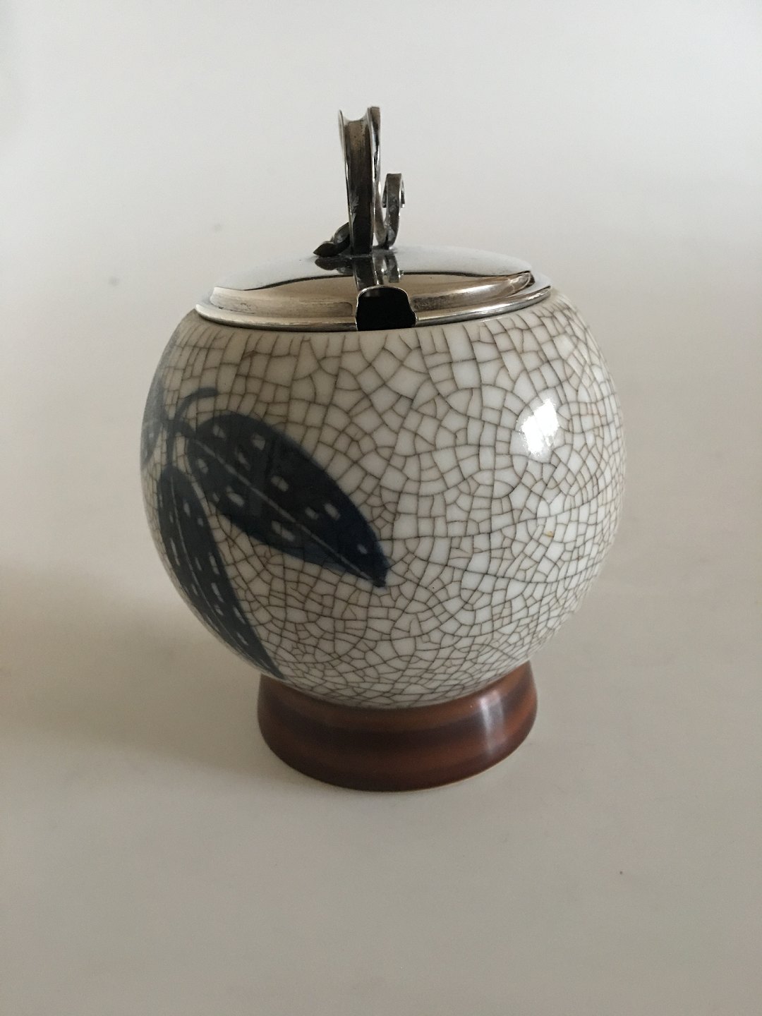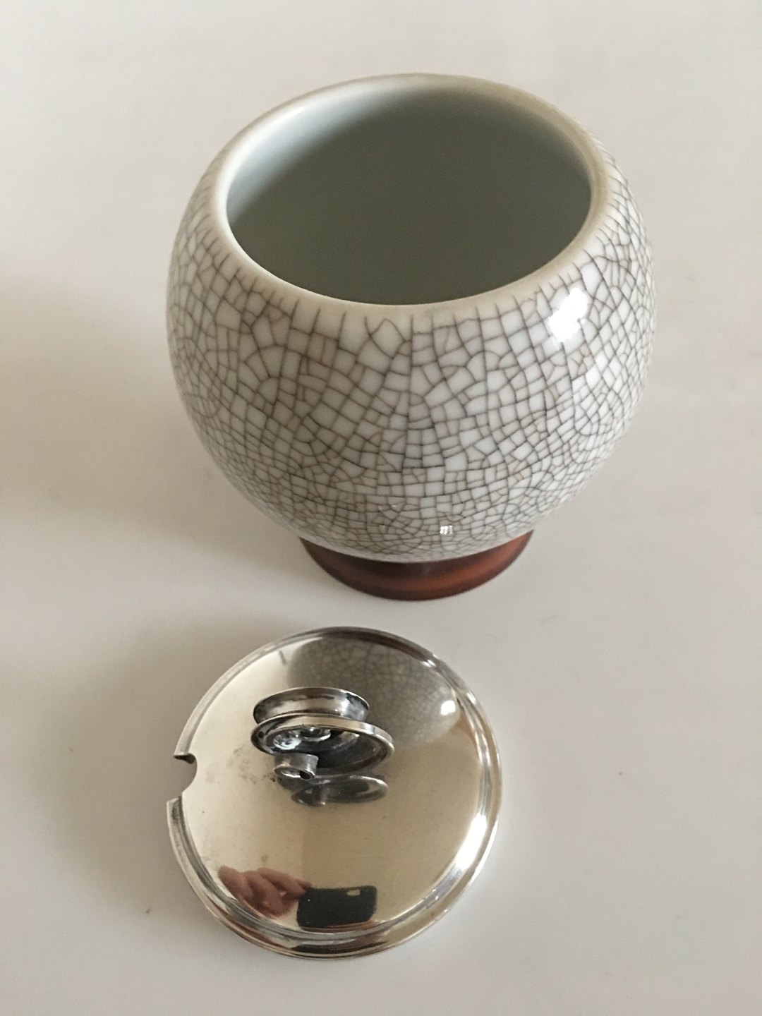 Bing & Grondahl Krakele Bowl / Jar No 374-K with Silver Lid. Measures 10 cm H (3 15/16"). In perfect condition. Silverlid by Hugo Grun.