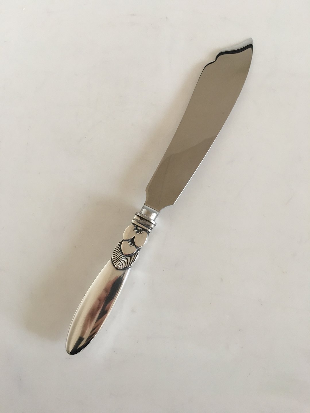 Georg Jensen Cactus Layered Cake Knife In Sterling Silver and Stainless Steel. 26.5 cm L (10 7/16")