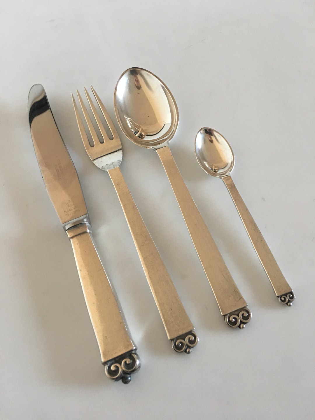 Evald Nielsen No 28 Sterling Sølv Bestik Sæt til 12 Pers. 48 dele. Sættet består af følgende.