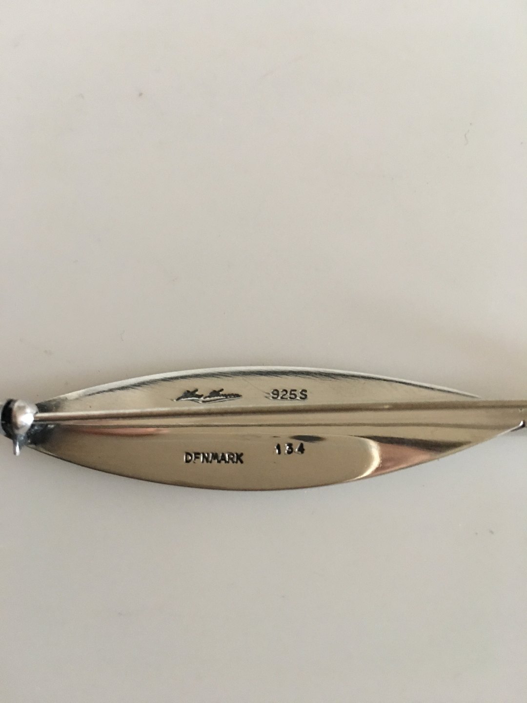 Hans Hansen Sterling Silver Brooch No 134. Measures 8.8 cm x 1.5 cm / 3 15/32 in. x 0 19/32 in. Weighs 11.6 g / 0.41 oz.