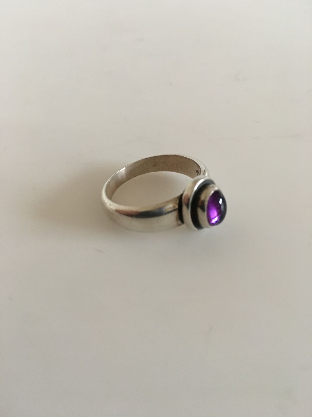 Georg Jensen Sterling Sølv Ring Nr. 46C med Amethyst. Ring Str. 55. Vejer 5 gram. Stenen måler ca. 0.6 cm. I fin stand.