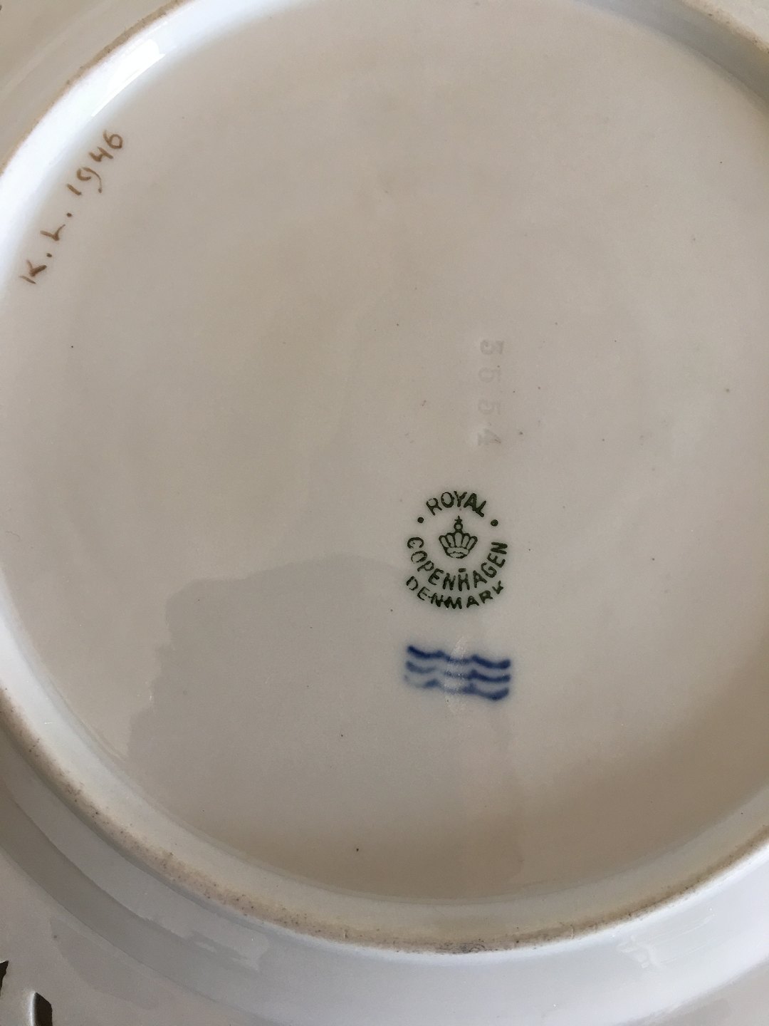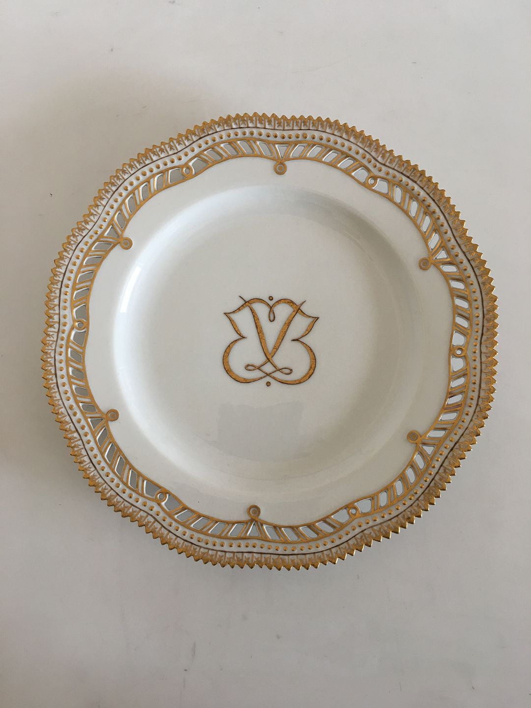 Royal Copenhagen Flora Danica Tallerken med Gennembrudt Kant og Våbenskjold. 2. Sortering, i fin hel stand. 23 cm