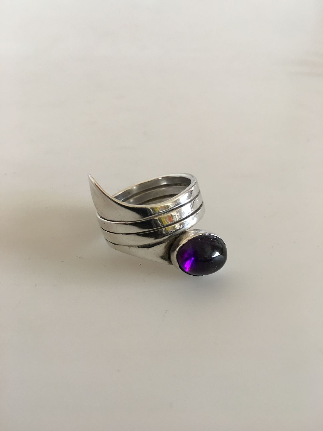 Hans Hansen Sterling Sølv Ring med Amethyst. Ringstørrelse 61. Vejer 9 gram. I pæn stand.