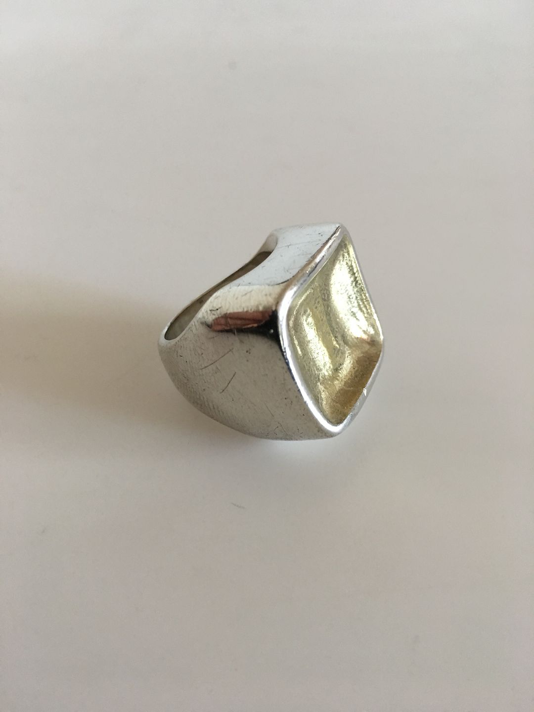 Hans Hansen Sterling Sølv delvist forgyldt Ring. Str. 53. Vejer 25 gram. 2 x 2 cm.