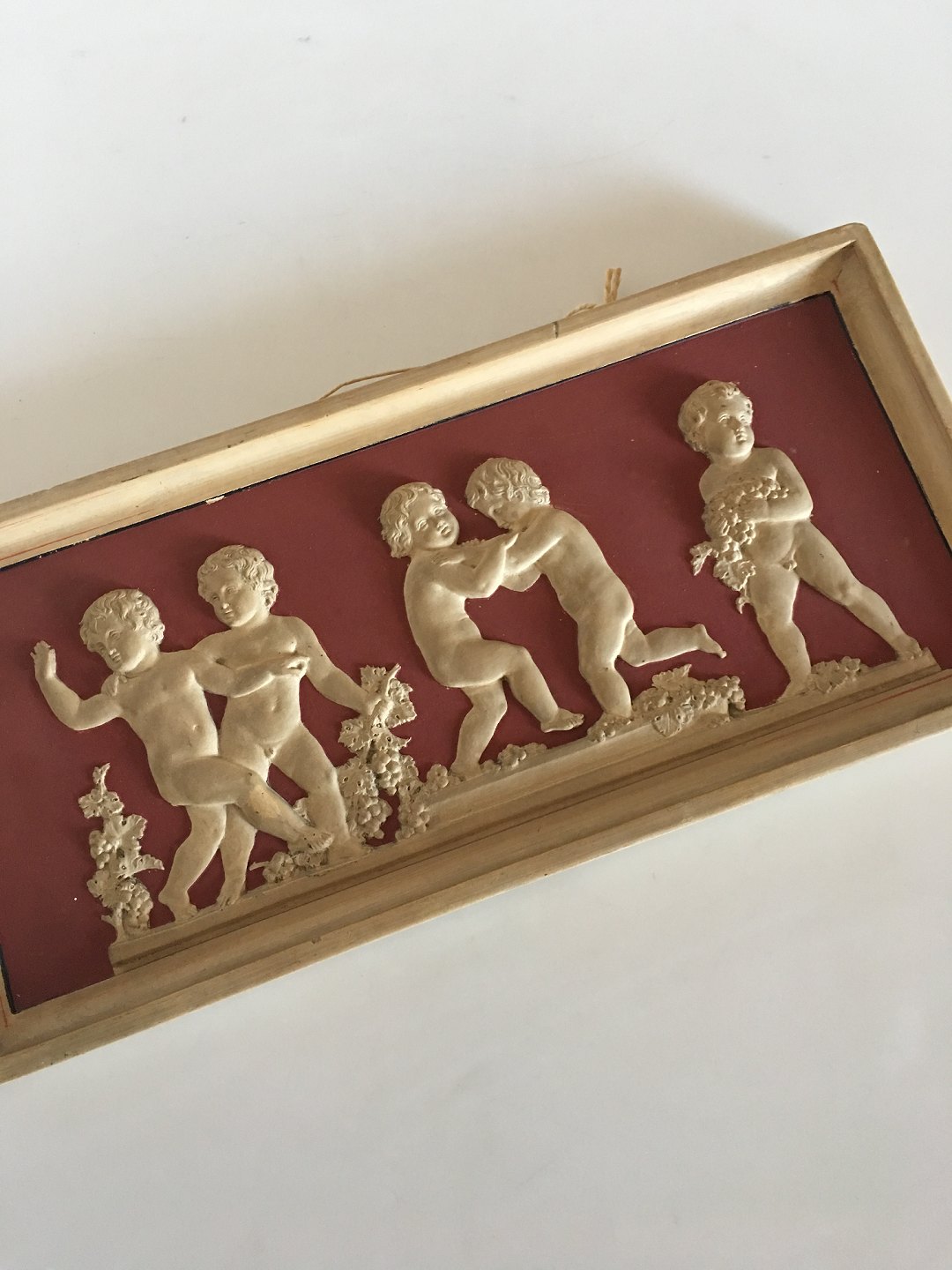 Peter Ipsen Relief in terracotta plate No 366 with Motif of Boys with Grapes. Measures 28.5 x 13.5 (11.22 x 5.11 inch). In good condition, with minor wear.