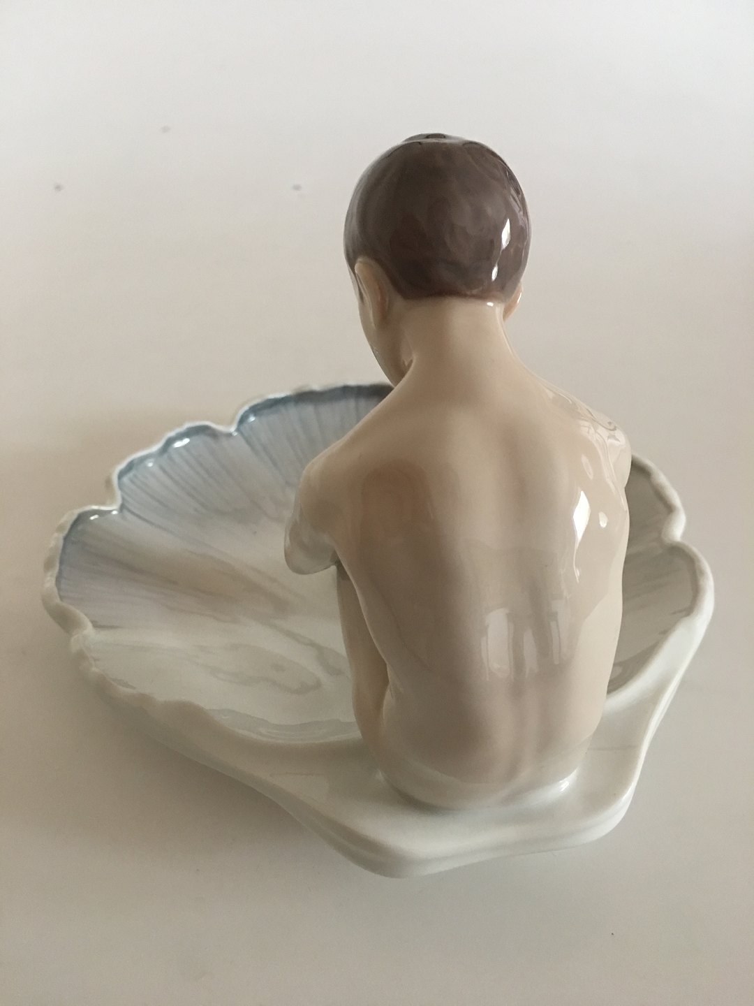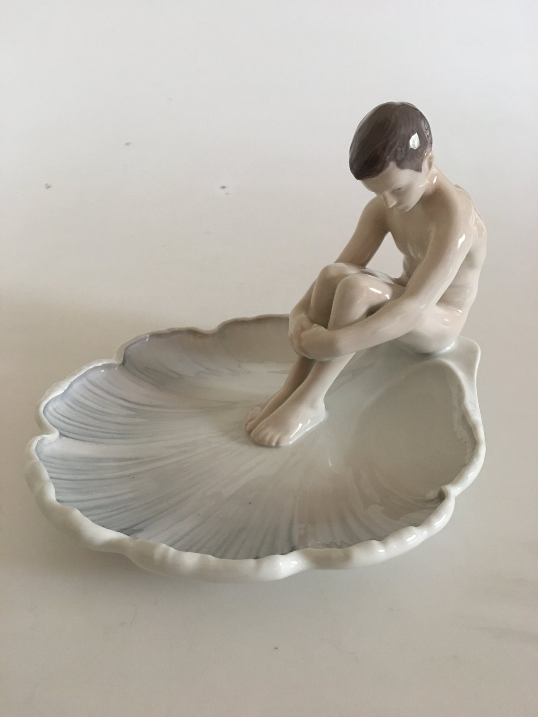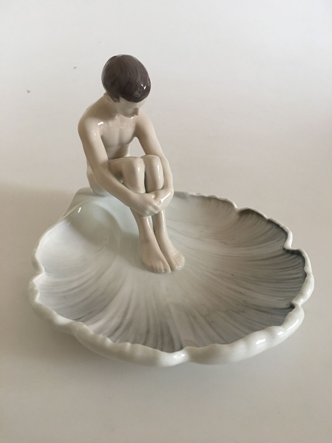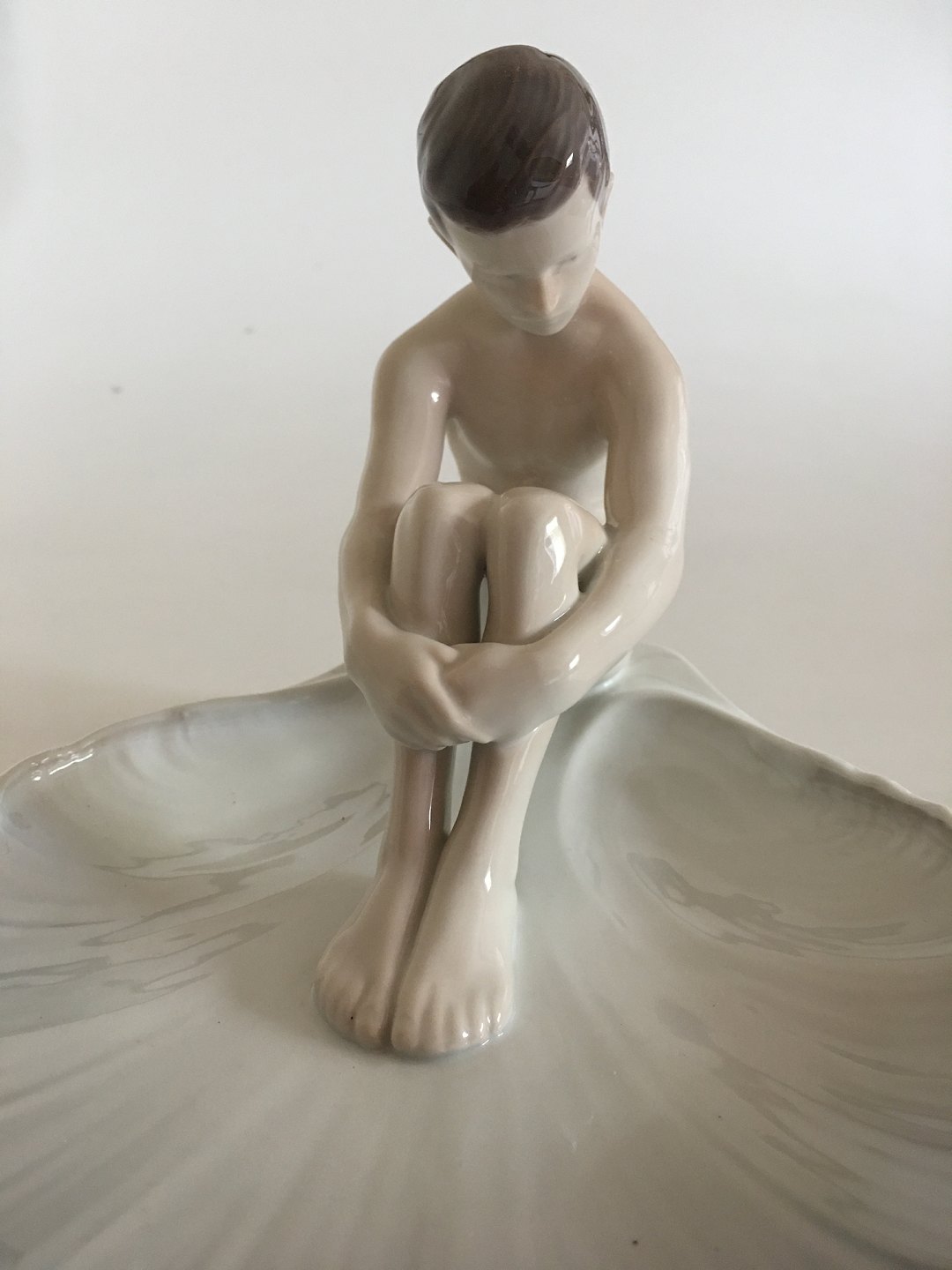 Bing & Grondahl Leaf shaped Art Nouveau Dish with Young Naked Man No. 1660. Measures 15 cm H (5 29/32 in.) 21.5 cm dia (8 15/32 in.) 1st Quality. In perfect condition.