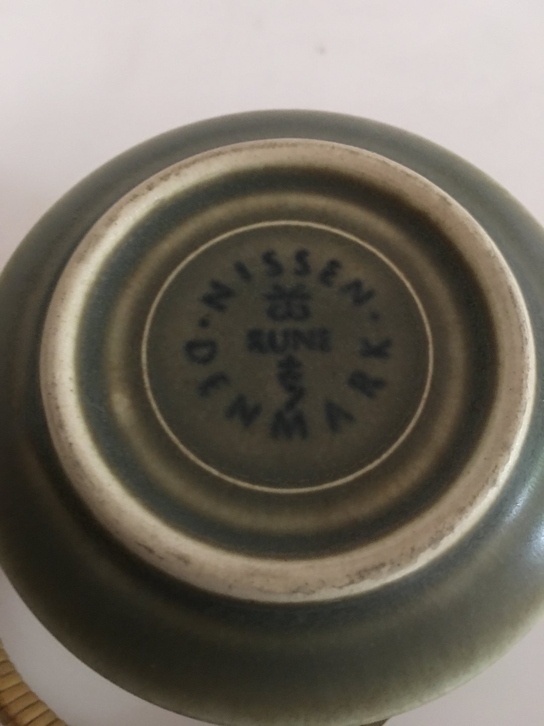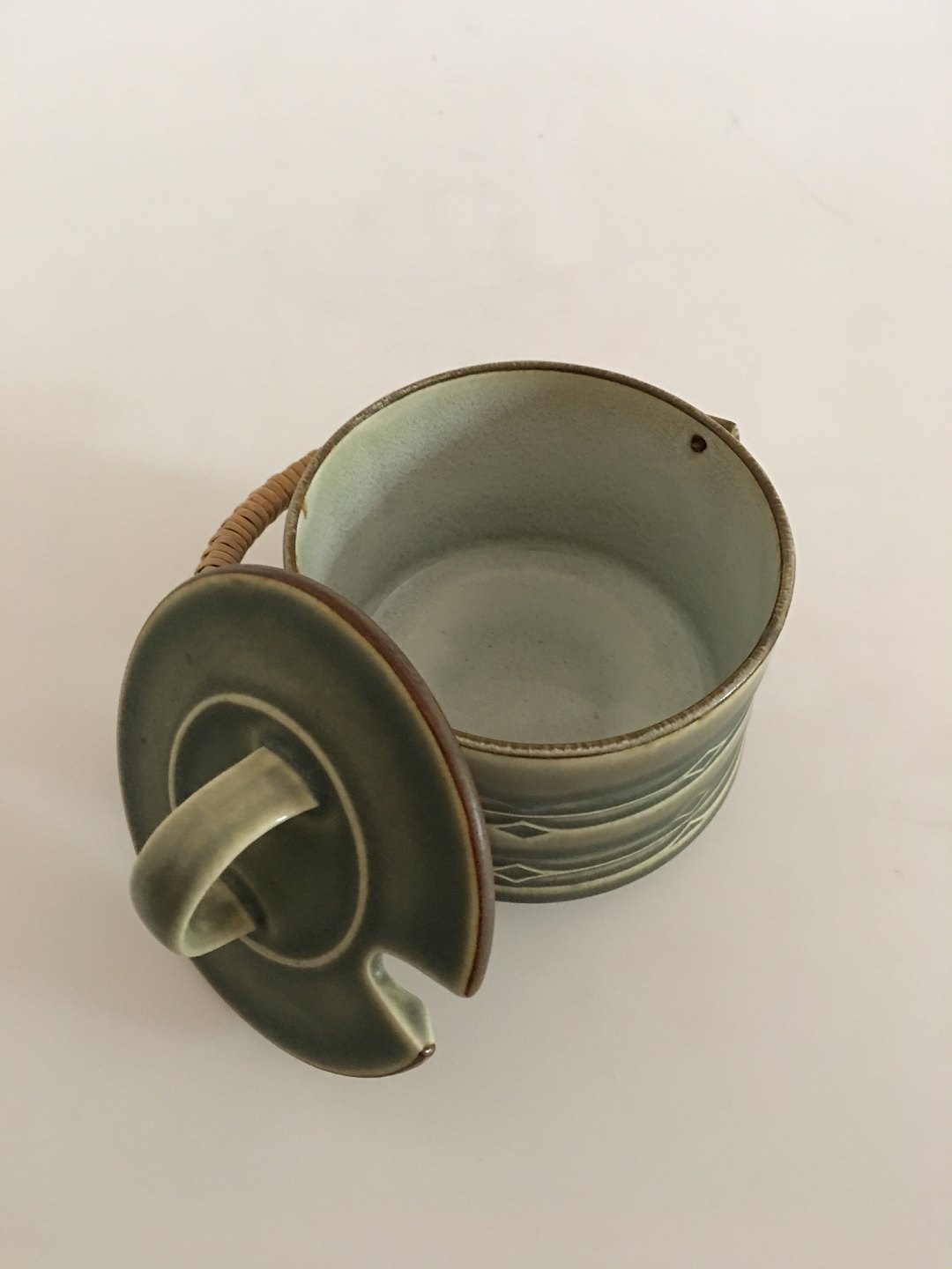 Bing and Grøndahl / Kronjyden Rune Stoneware Jam Jar. Designed by Jens Quistgaard. Measures 7 cm x 9 cm / 2.75 in. x 3.54 in.