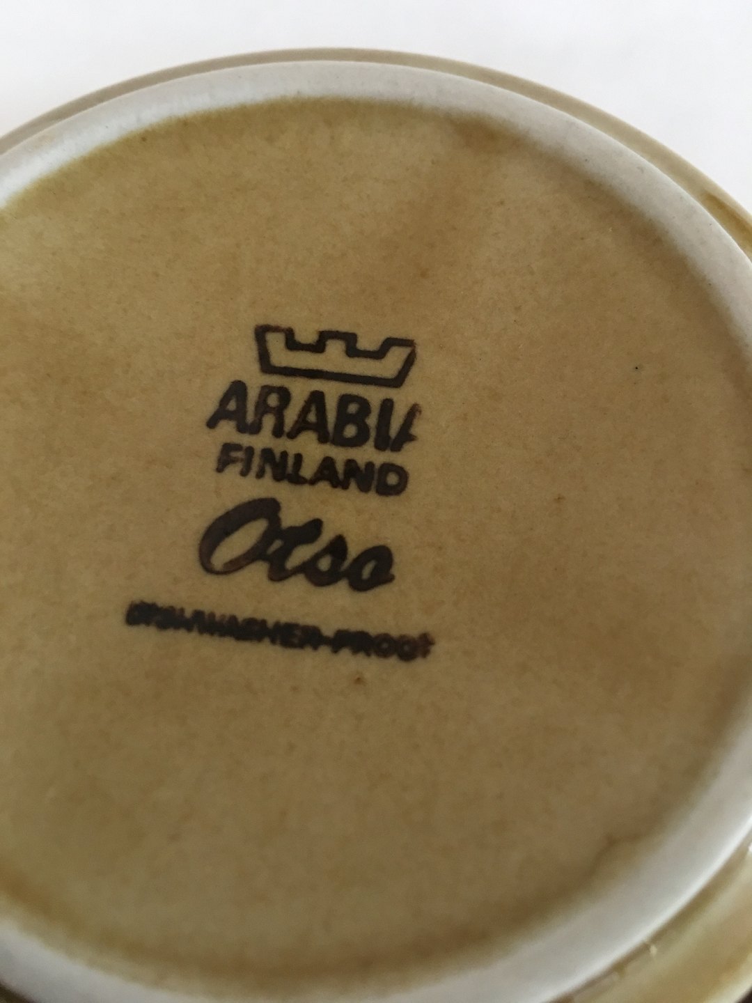 Arabia Finland "Otso" Tekop med Underkop. Kop måler 5 cm H. 10 cm dia. Perfekt stand.