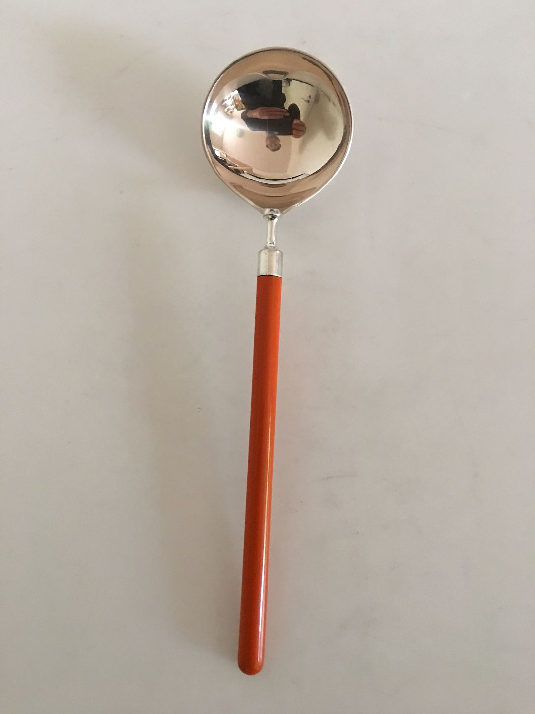 Hans Hansen Amalie Sterling Sølv Serveringsske med Orange Plast Håndtag. 21 cm L