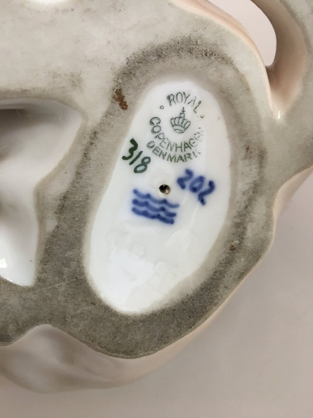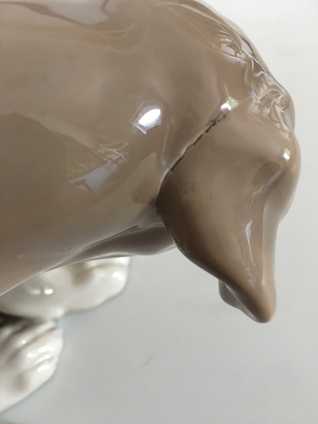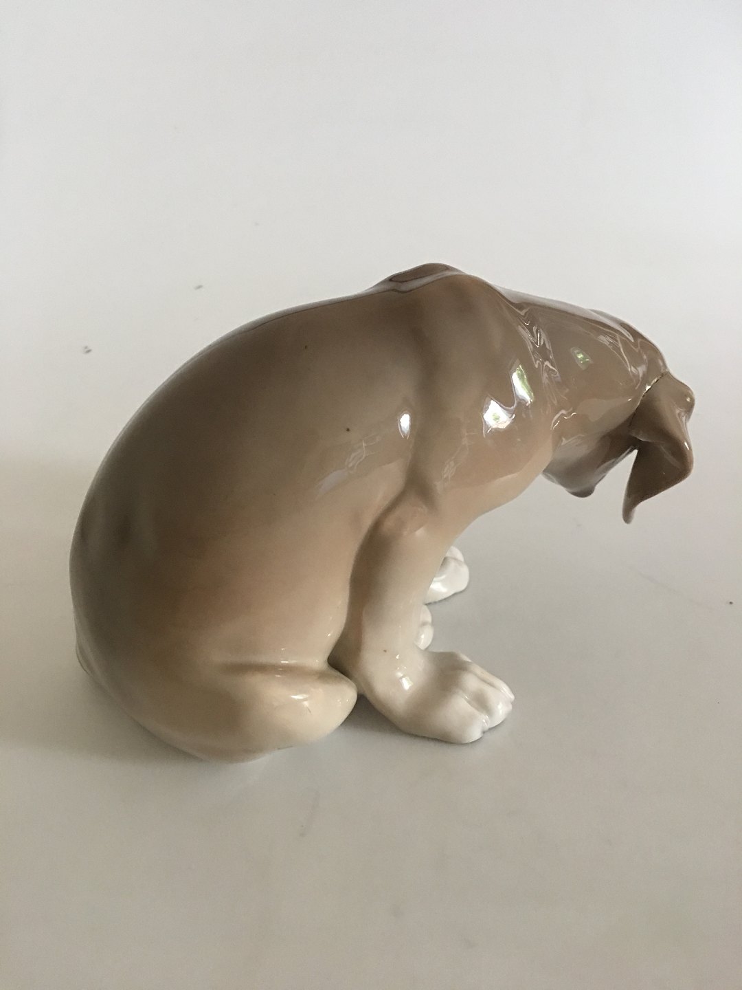 Royal Copenhagen Figurine af Hund "Bob" No. 318. Hunden har en brændingsfejl omkring hele det ene øre. Ca. 14 cm Høj. Fra 1889-1922